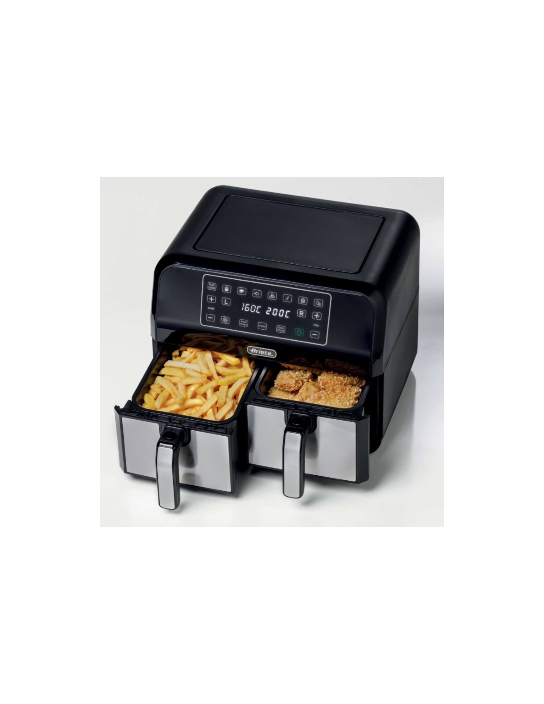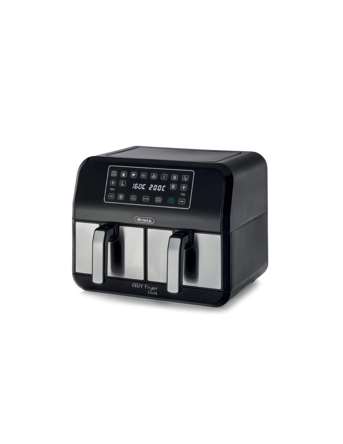Con la friggitrice ad aria Airy Fryer Dual Metal puoi friggere qualsiasi pietanza in doppia quantità, utilizzando un solo cucchiaio di olio per ottenere fritture sane e gustose allo stesso tempo. Grazie ai 2 cestelli separati, 4 L per uno, con Airy Fryer Dual Metal di Ariete potrai cuocere fino a 3,4 kg di patatine fritte in una sola volta! Patatine fritte, ma non solo, anche crocchette, pesce, carne e tanti altri alimenti impanati, sia surgelati e pronti da friggere, che freschi e appena impanati, grazie a 8 programmi preimpostati.