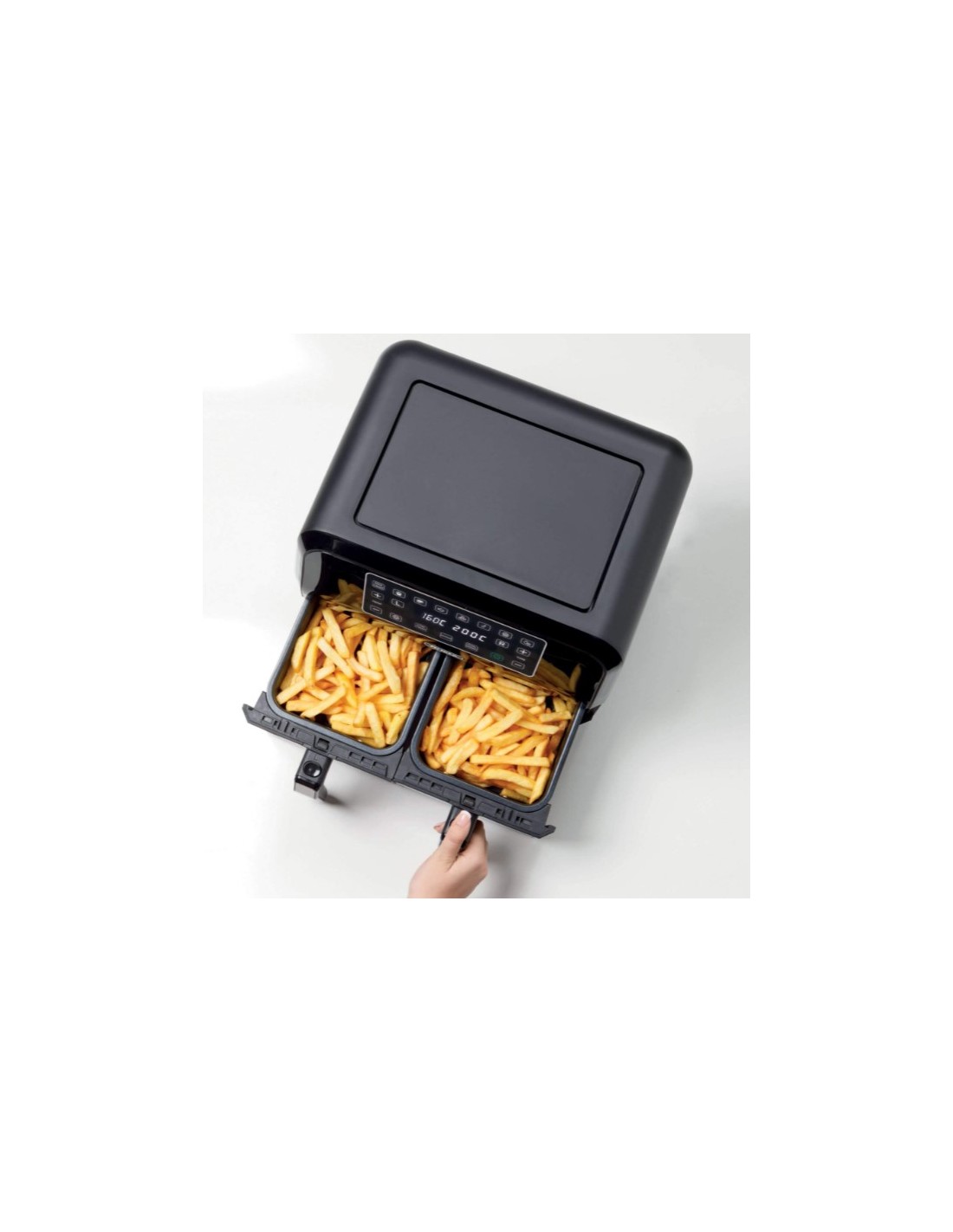 Puoi cuocere due pietanze diverse contemporaneamente oppure cuocere una pietanza in grandi quantità dividendola nei 2 cestelli con la funzione Dual Cook. Per cene e pranzi a base di diverse pietanze, non preoccuparti delle tempistiche: con la funzione Sincronizza puoi cucinare 2 piatti diversi e far sì che siano pronti nello stesso momento.