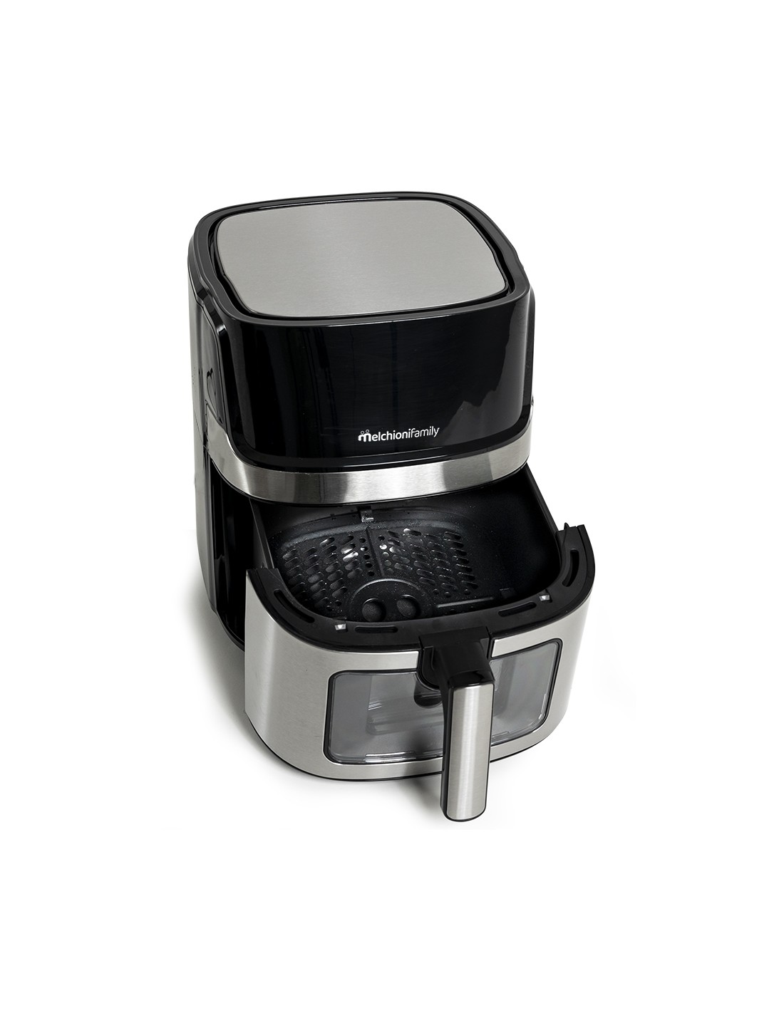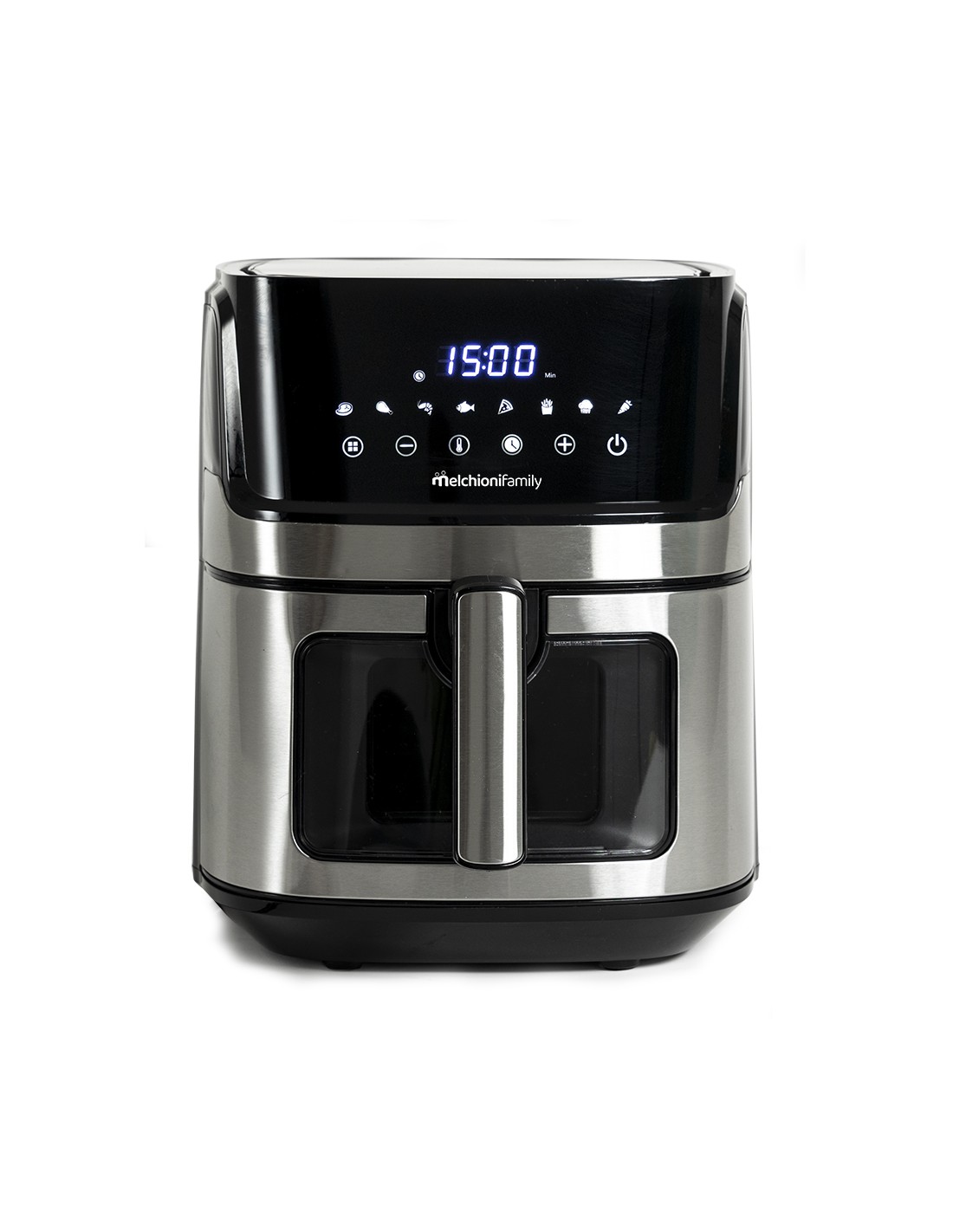 Melchioni 118340033. Tipo di prodotto: Friggitrice, Capacità: 6,5 L, Temperatura (min): 80 °C. Tipo di costruzione: Singolo, Colore del prodotto: Nero, Stainless steel, Tipo di controllo: Touch. Tipo di display: LED. Potenza: 1600 W, Tensione di ingresso AC: 220 - 240 V, Frequenza di ingresso AC: 50 - 60 Hz. Larghezza: 337 mm, Profondità: 268 mm, Altezza: 342 mm