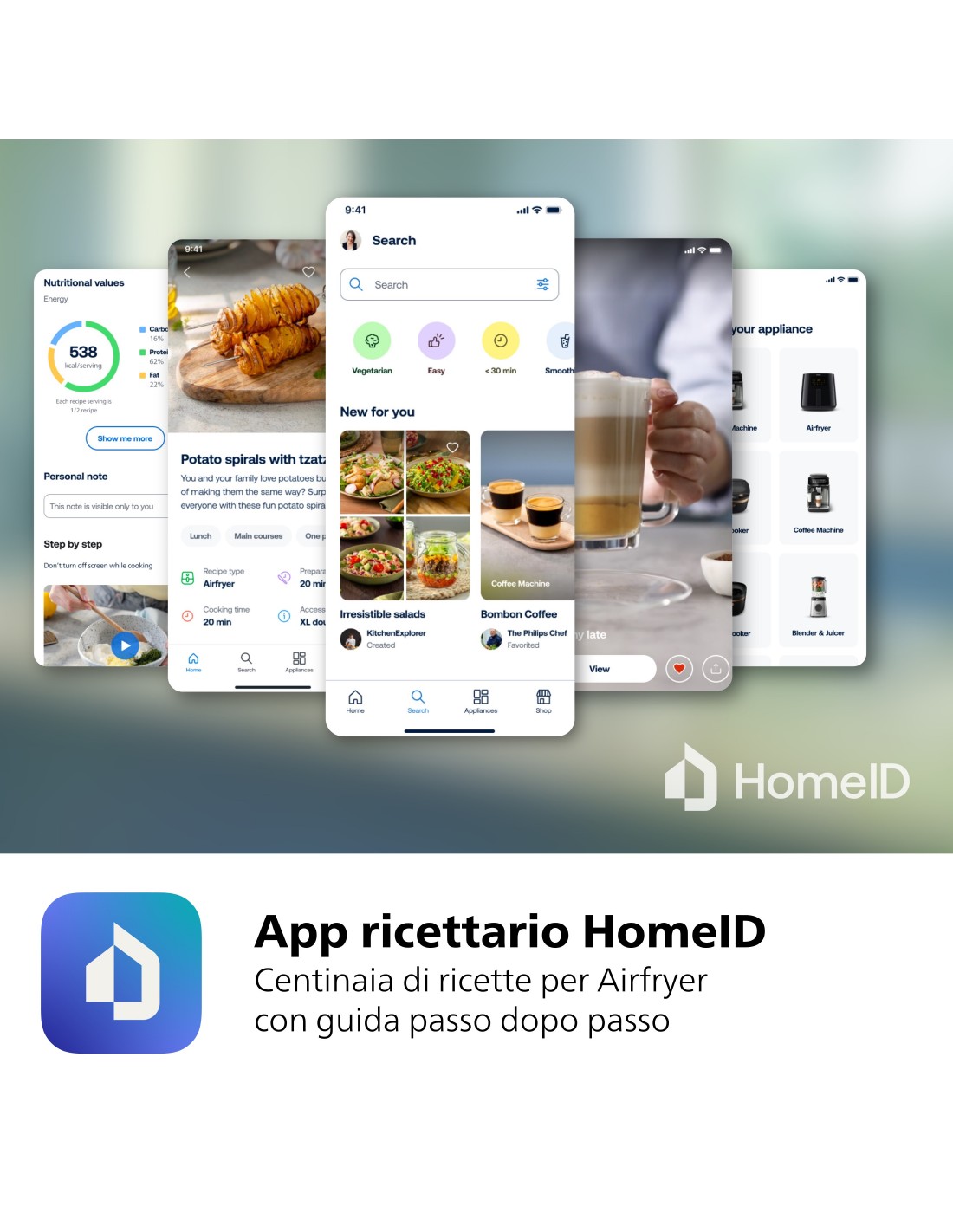 Migliaia di ricette gratuite e impostazioni specifiche per Airfryer. Per il 93% degli utenti, l'app HomeID è un'ottima alleata in cucina.**