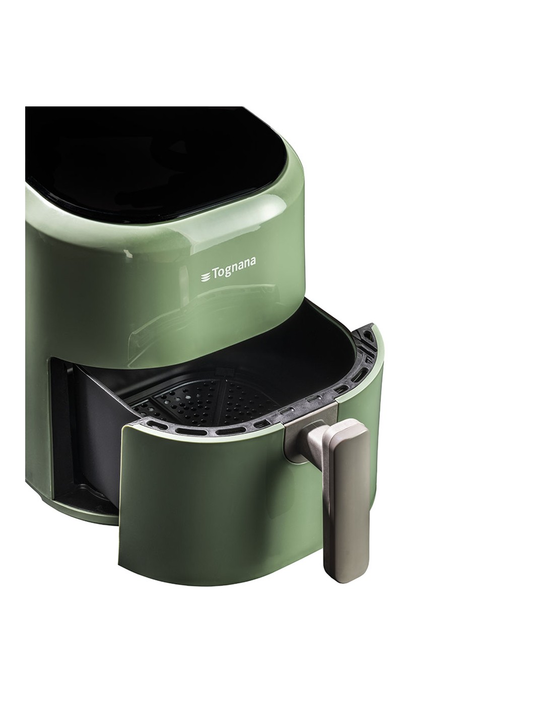 FRIGGITRICE AD ARIA 4,5 L: capacità 4,5l, contenitore e griglia antiaderente, temperatura regolabile (80°-200°), timer 60 min, display digitale, 10 programmi preimpostati, preriscaldamento, protezione da surriscaldamento, cestello estraibile antiaderente, spegnimento automatico, piedini antiscivolo, 1400W, colore verde salvia