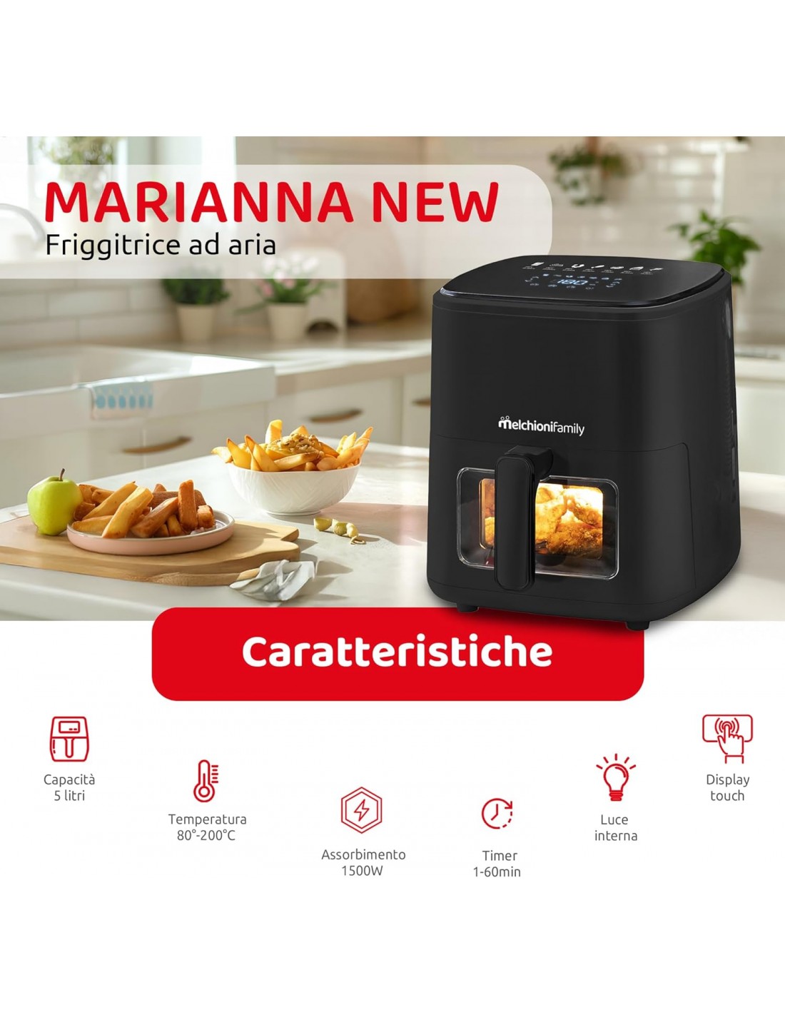La Marianna New è la soluzione perfetta per una cottura sana e veloce, combinando tecnologia avanzata con un design compatto ed elegante. Grazie alla sua capacità di 5 litri e ai 7 programmi preimpostati, offre versatilità e praticità per cucinare una vasta gamma di piatti in modo semplice e uniforme.