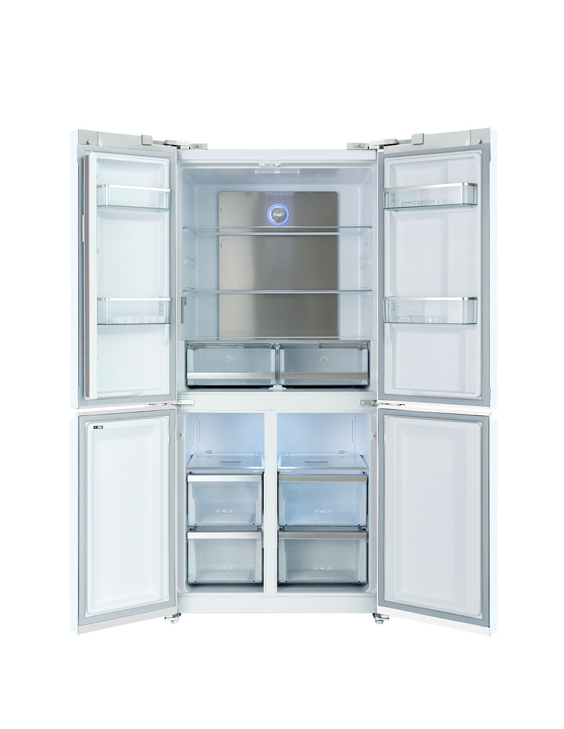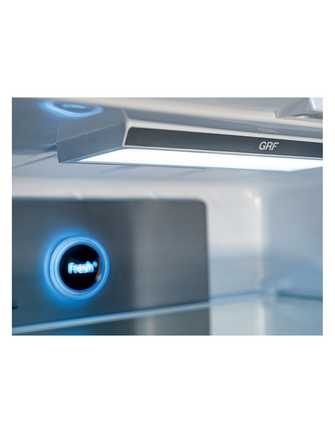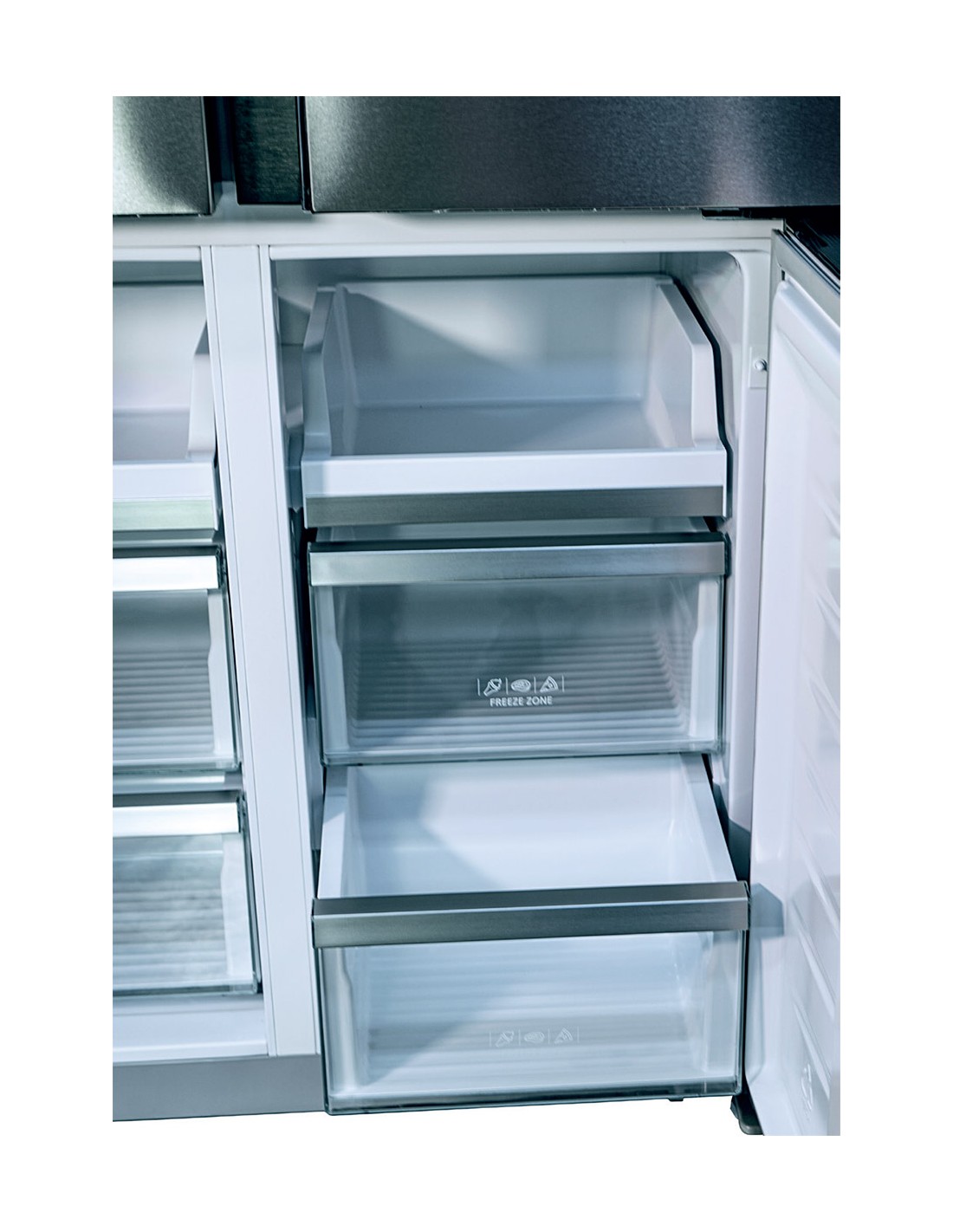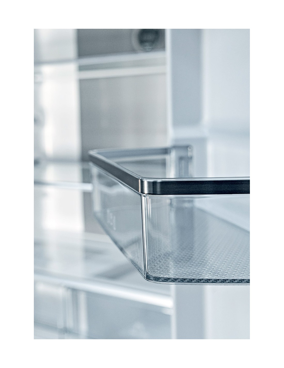 Un prodotto con ampi balconcini, ripiani e cassetti con finiture in alluminio nella parte frigorifero. Due vassoi e quattro cassetti nella parte freezer assicurano massima capienza per tutti i cibi.
