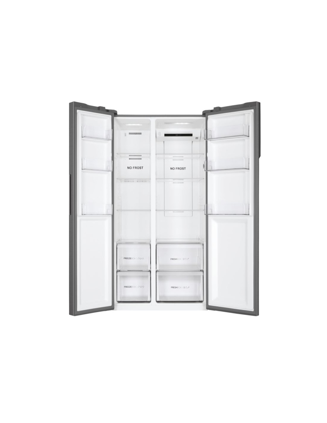 Con una larghezza di 90 cm, i frigoriferi Side By Side 90 di Haier offrono una capienza XXL e l’accesso immediato al vano frigo e al vano freezer. Il generoso spazio interno permette di riporre una spesa grossa continuando ad avere il frigorifero in ordine e ben organizzato. I modelli presentano un elegante design che si integra perfettamente con qualsiasi arredamento e un’interfaccia digitale intelligente per impostare la temperatura ideale secondo le proprie esigenze specifiche. I frigoriferi SBS 90 Serie 3 di Haier sono dotati di tecnologia No Frost, mentre la cerniera con arresto automatico si apre a 90°.