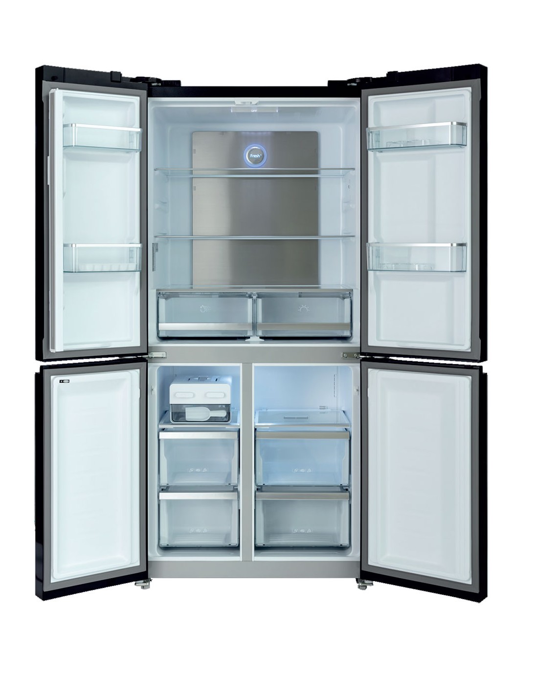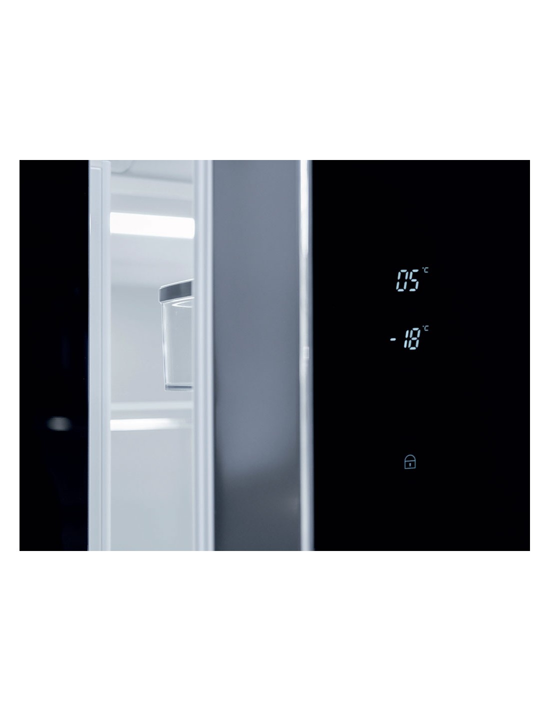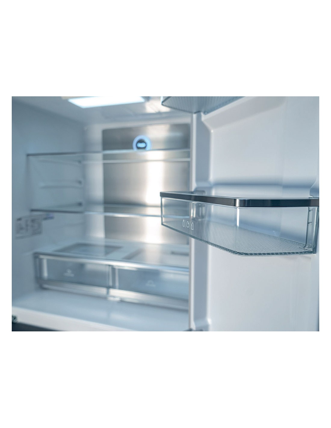 Un prodotto capiente, con un cassetto per conservare frutta e verdura dotato di un sistema di controllo dell’umidità che contribuisce a preservare la qualità e la freschezza più a lungo. I balconcini ampi, con profili in alluminio e trama sul fondo, rendono il frigorifero sofisticato ed elegante.