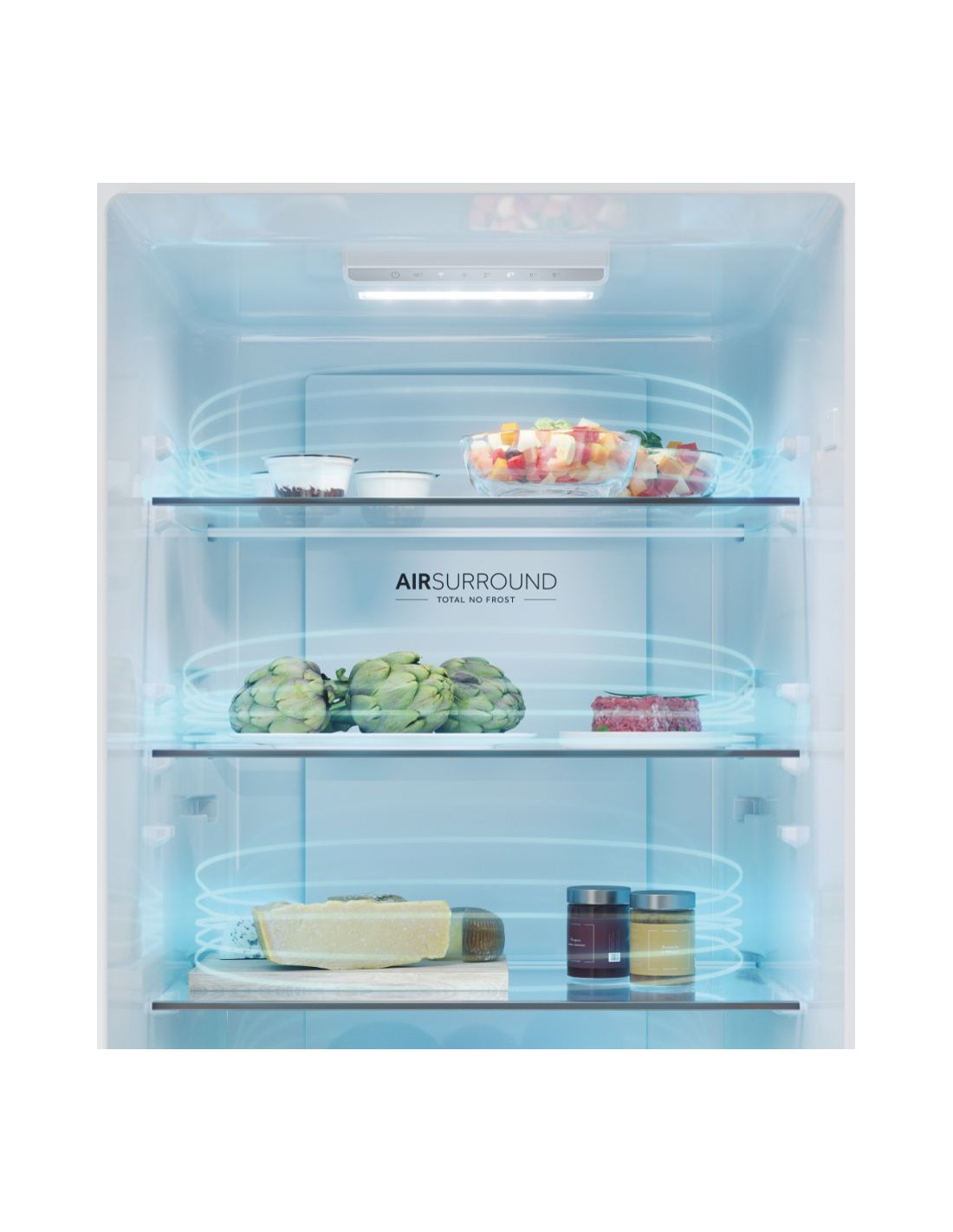 Haier 2D 60 Serie 1 HDW1620CNPK. Capacità netta totale: 377 L. Cerniera porta: Destra. Classe climatica: N-T, Emissione acustica: 35 dB. Capacità netta frigorifero: 258 L, No Frost (frigorifero), Sistema Multi-Airflow (frigorifero), Luce interna. Capacità netta congelatore: 119 L, Capacità di congelamento: 8 kg/24h, No Frost (congelatore). Compartimento zona fresca. Classe efficienza energetica: C, Consumo energetico annuo: 169 kWh. Colore del prodotto: Argento
