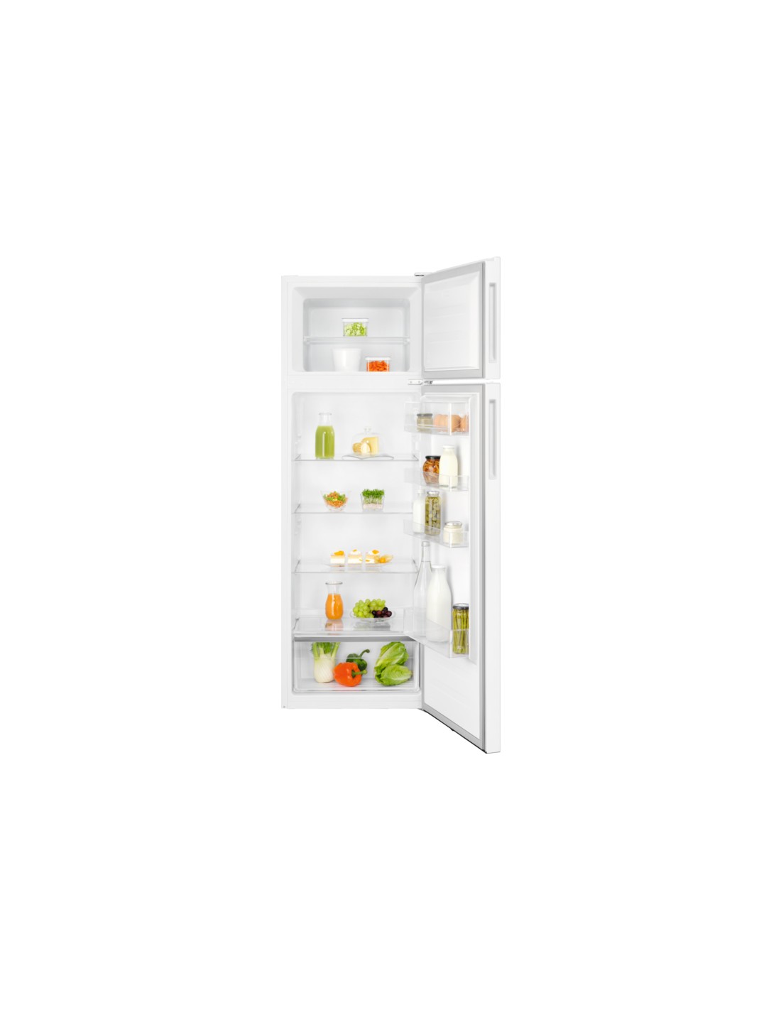 Electrolux LTB1AE28W0. Capacità netta totale: 242 L. Cerniera porta: Destra, Tipo di display: LCD. Classe climatica: SN-ST, Emissione acustica: 40 dB. Capacità netta frigorifero: 201 L, Luce interna, Numero di ripiani frigorifero: 3, Numero di cassetti per verdura: 1. Capacità netta congelatore: 41 L, Capacità di congelamento: 2 kg/24h. Consumo energetico annuo: 181 kWh. Colore del prodotto: Bianco
