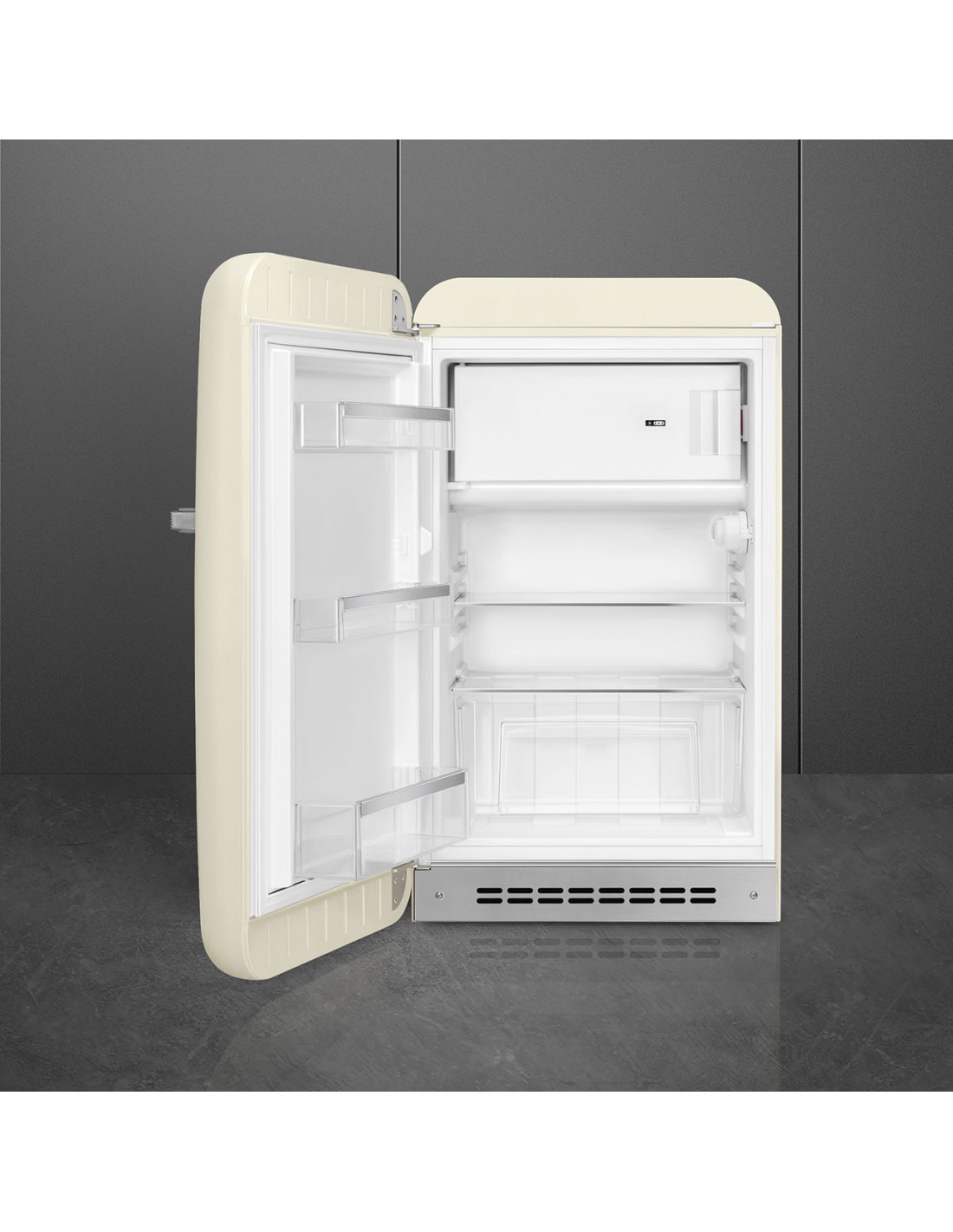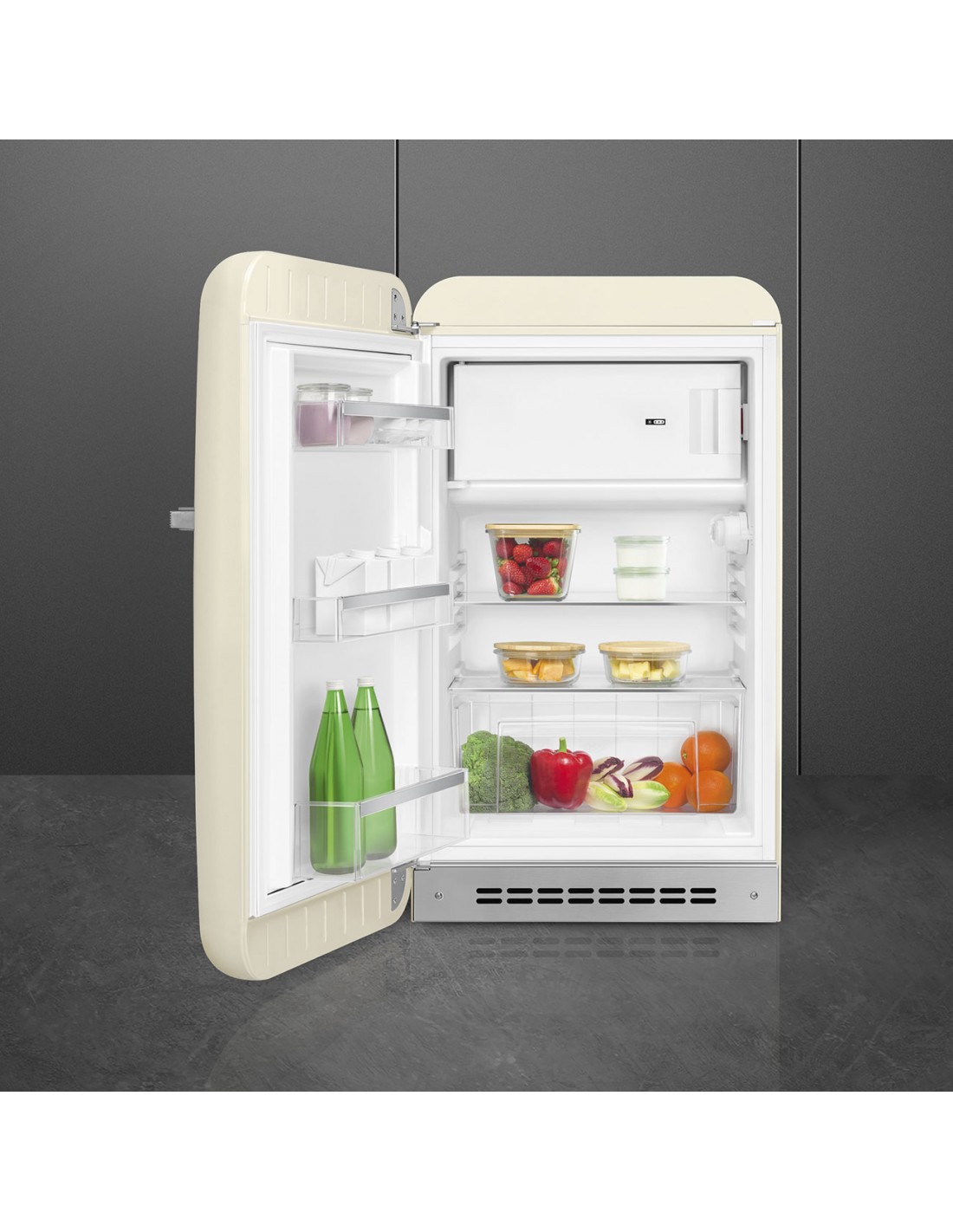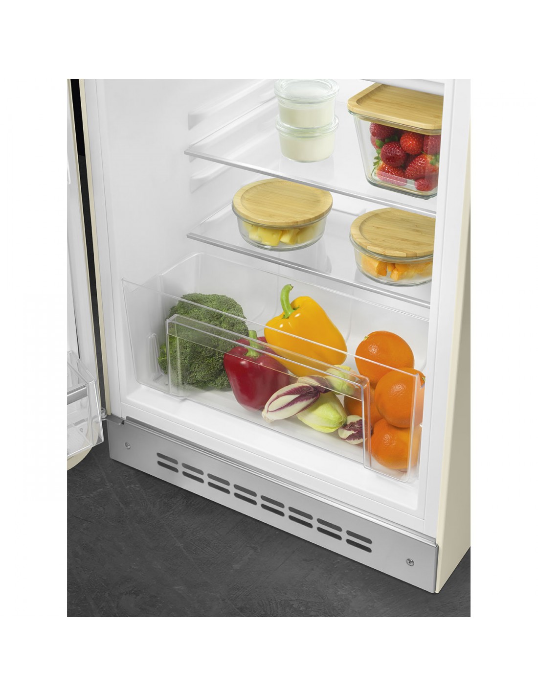 Smeg FAB10LCR6. Posizionamento dell'apparecchio: Libera installazione, Colore del prodotto: Crema, Cerniera porta: Sinistra. Capacità netta totale: 122 L, Classe climatica: N-T, Classe emissione rumore: B. Capacità netta frigorifero: 105 L, Tipo di lampada: LED. Posizione del congelatore: Posto in alto, Capacità netta congelatore: 17 L, Capacità di congelamento: 2,6 kg/24h. Lunghezza cavo: 1,8 m