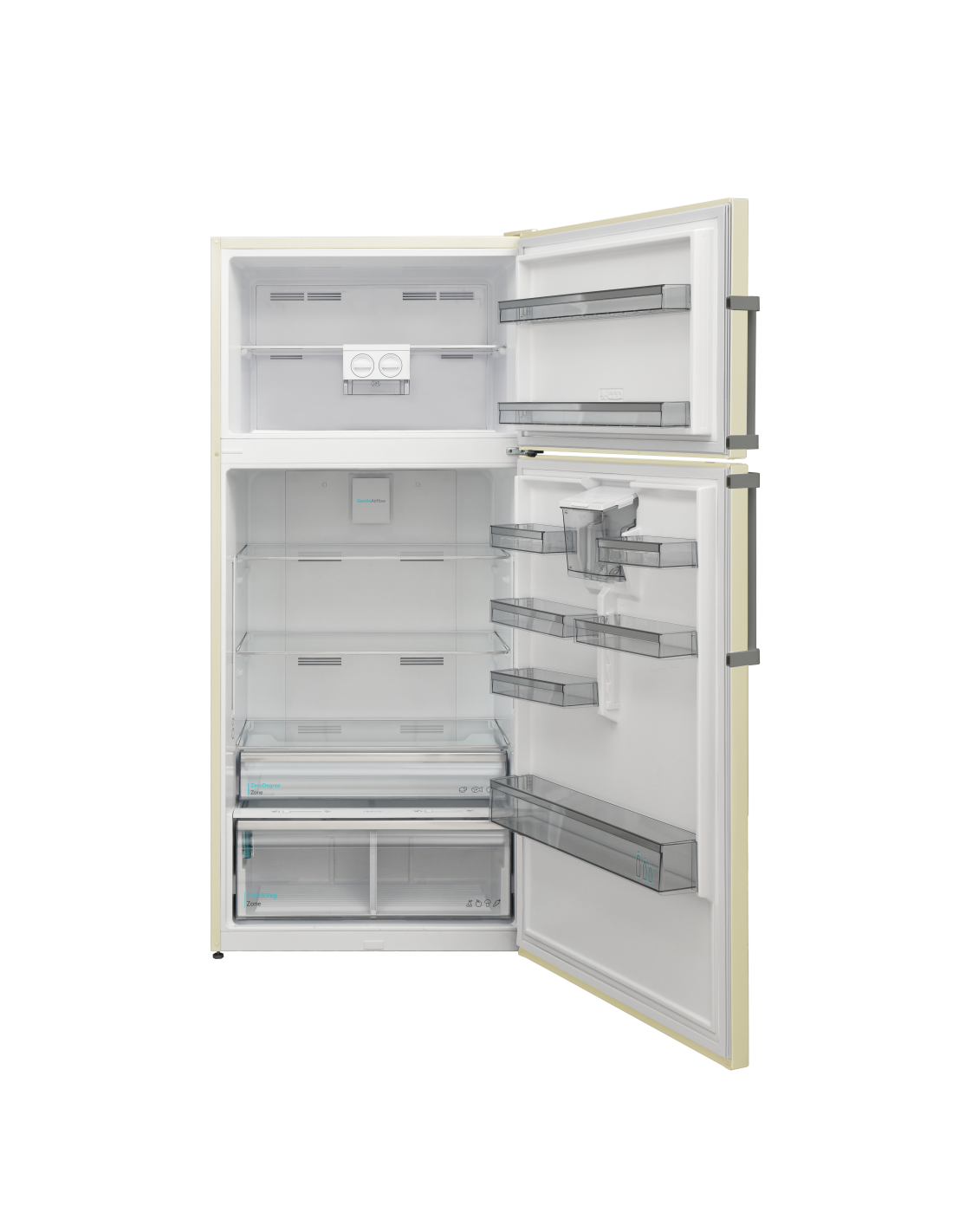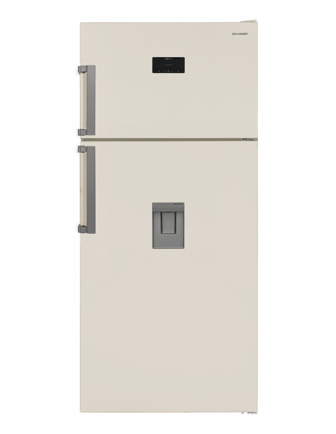 Sharp SJ-NTA35CHDJE. Capacità netta totale: 587 L. Cerniera porta: Destra. Classe climatica: SN-T, Emissione acustica: 44 dB. Capacità netta frigorifero: 445 L, No Frost (frigorifero), Numero di ripiani frigorifero: 3, Numero di cassetti per verdura: 1. Capacità netta congelatore: 142 L, Capacità di congelamento: 9 kg/24h, No Frost (congelatore). Compartimento zona fresca. Classe efficienza energetica: E, Consumo energetico annuo: 296 kWh. Colore del prodotto: Beige