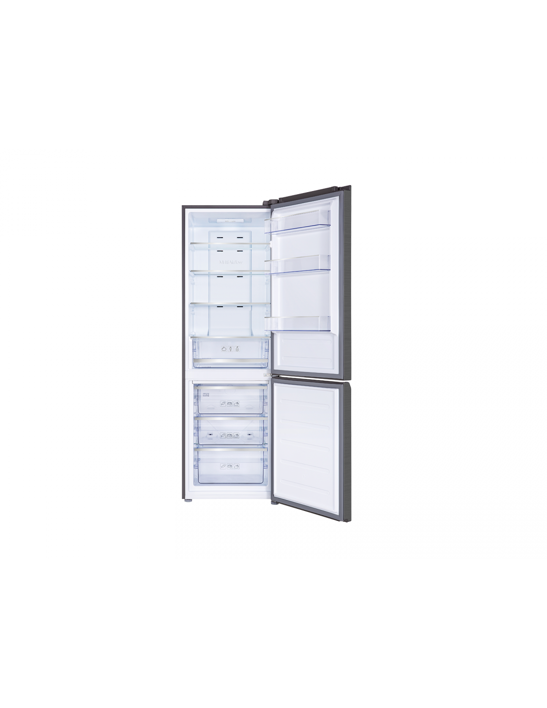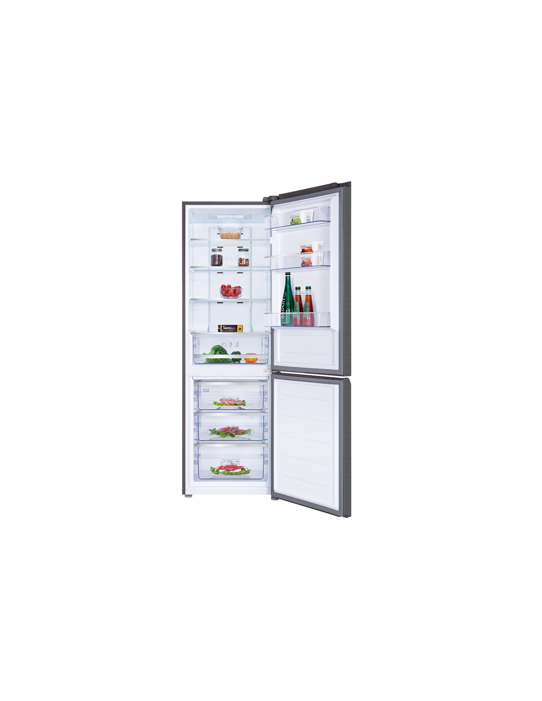 TCL RP318BXE1. Capacità netta totale: 318 L. Cerniera porta: Destra, Tipo di display: LED. Classe climatica: SN-T, Emissione acustica: 40 dB. Capacità netta frigorifero: 219 L, Sistema Multi-Airflow (frigorifero), Luce interna, Numero di ripiani frigorifero: 4. Capacità netta congelatore: 99 L, Capacità di congelamento: 6 kg/24h, No Frost (congelatore). Classe efficienza energetica: E, Consumo energetico annuo: 247 kWh. Colore del prodotto: Acciaio inox