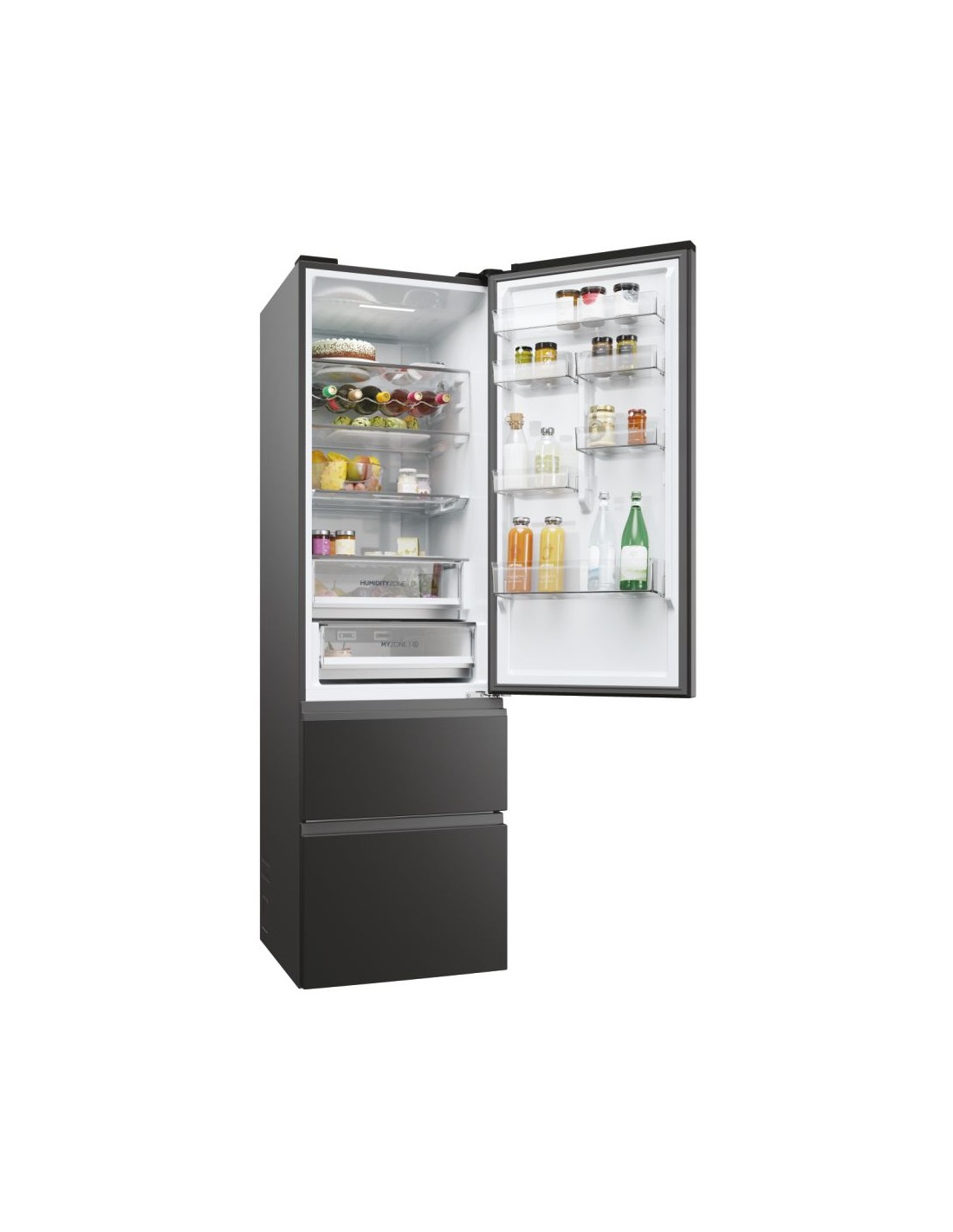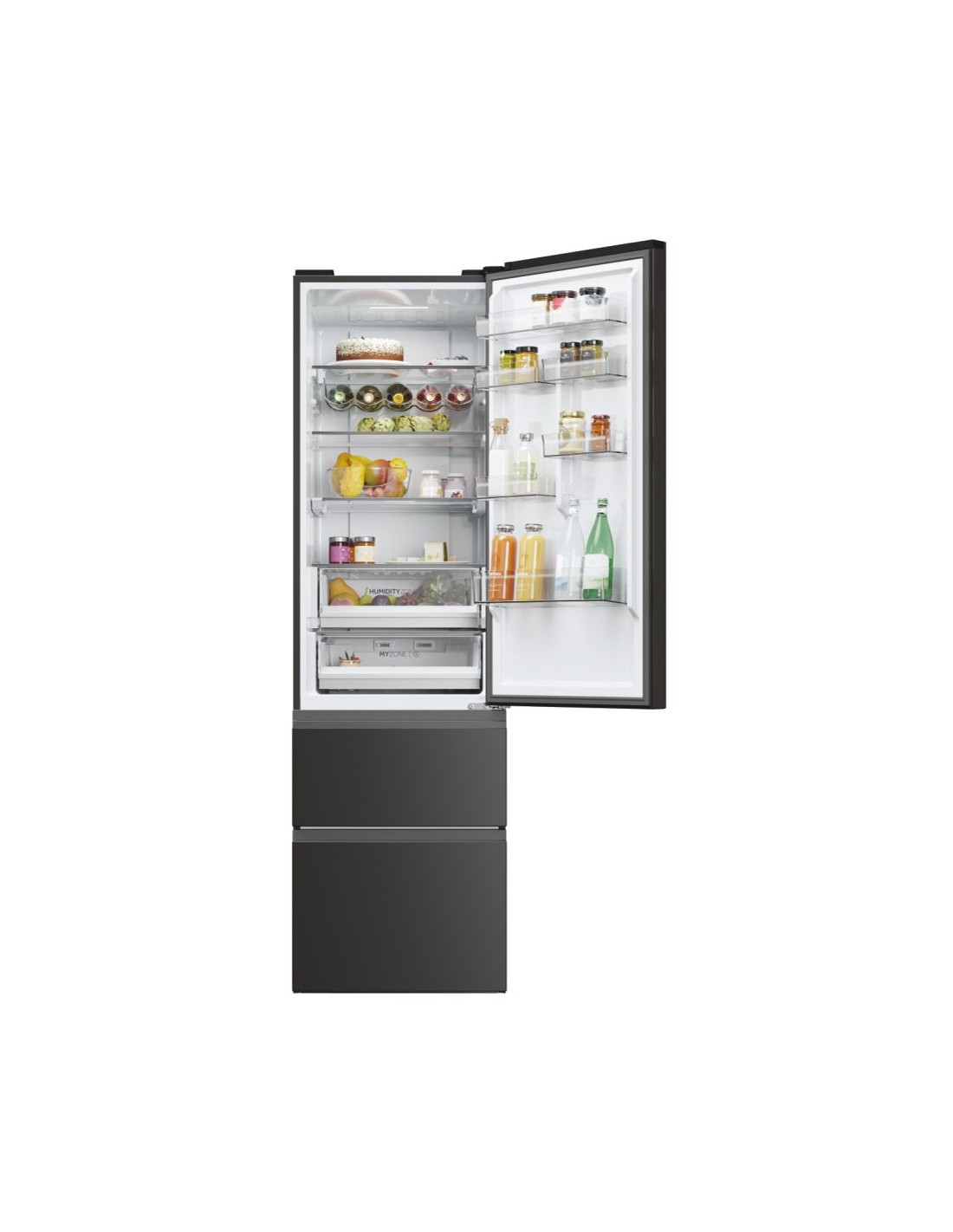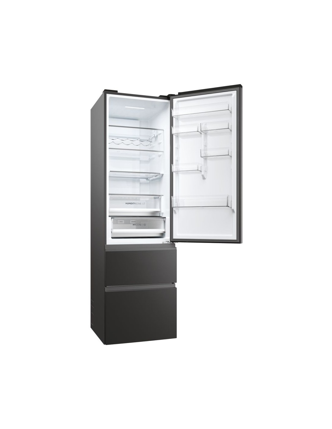 Haier 3D 60 Serie 5 HTW5620DNPT. Capacità netta totale: 414 L. Cerniera porta: Destra. Classe climatica: SN-T, Emissione acustica: 35 dB. Capacità netta frigorifero: 289 L, No Frost (frigorifero), Sistema Multi-Airflow (frigorifero), Luce interna. Capacità netta congelatore: 125 L, Capacità di congelamento: 10 kg/24h, No Frost (congelatore). Compartimento zona fresca. Classe efficienza energetica: D, Consumo energetico annuo: 226 kWh. Colore del prodotto: Nero