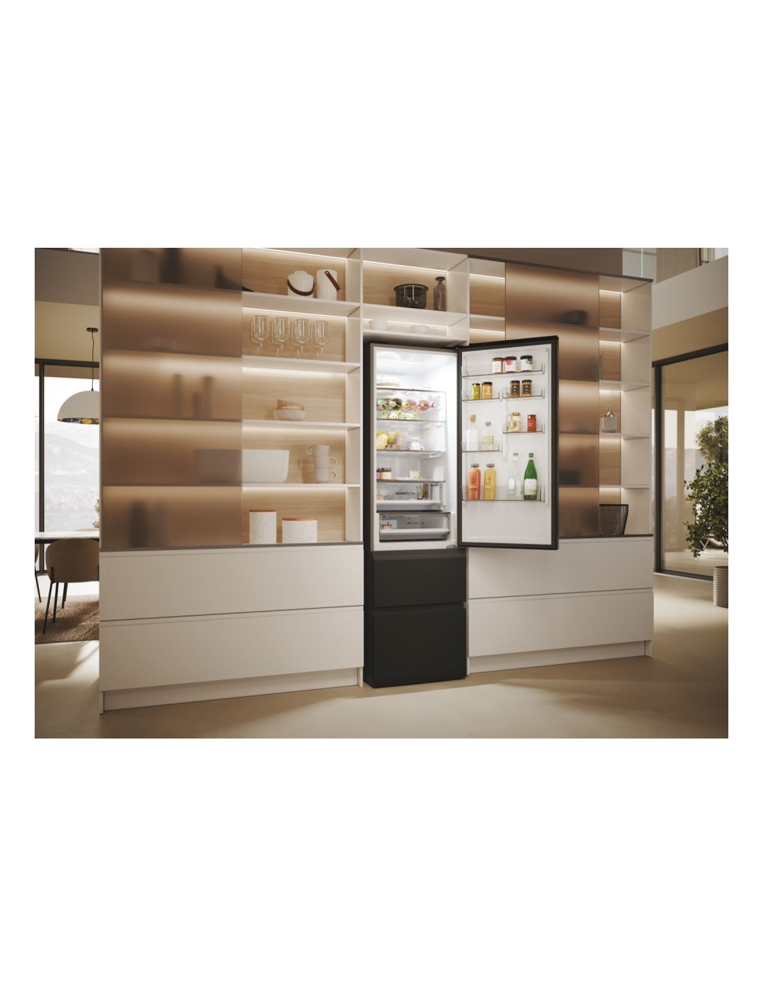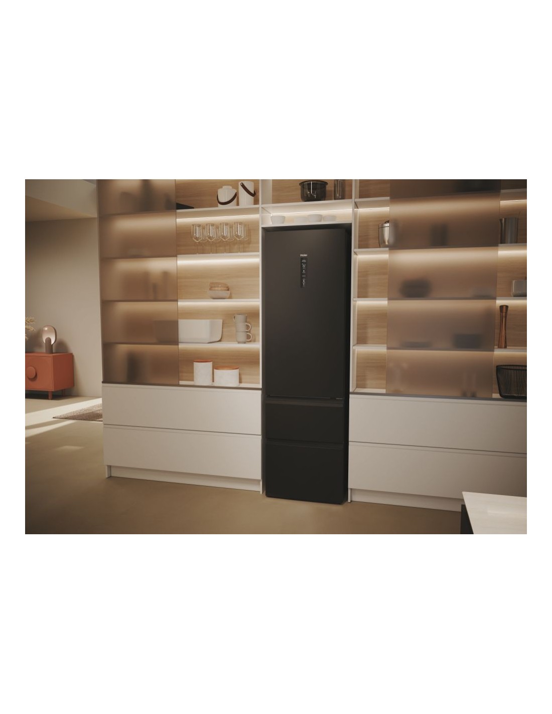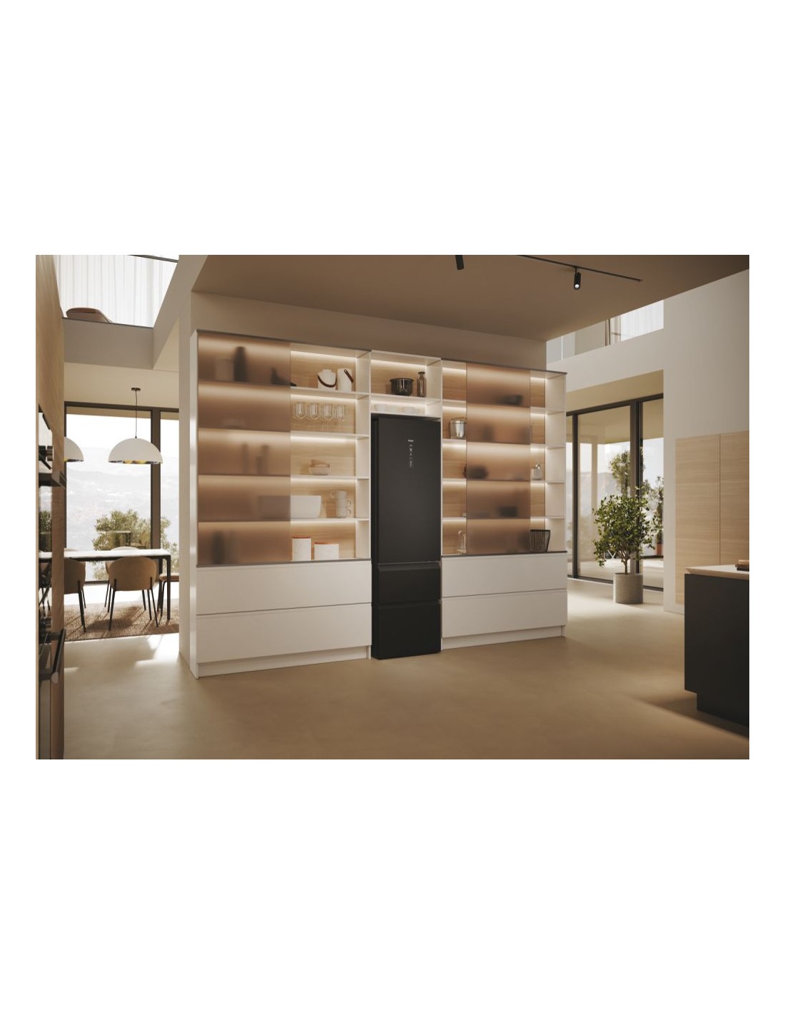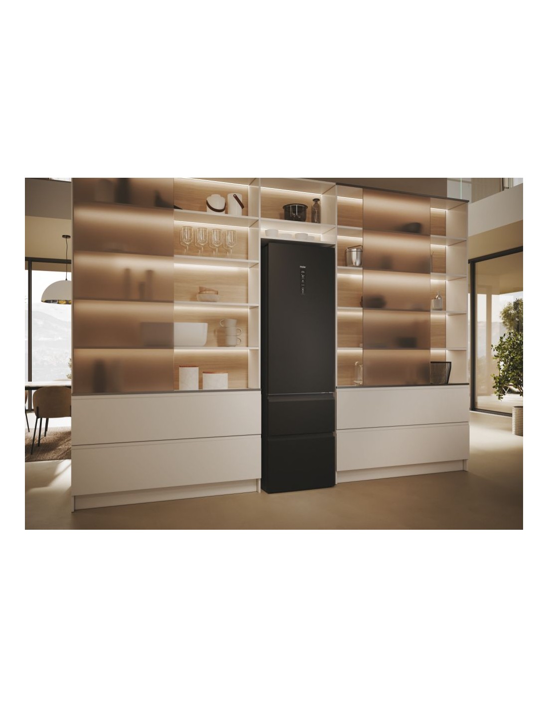 Haier 3D 60 Serie 5 HTW5620DNPT. Capacità netta totale: 414 L. Cerniera porta: Destra. Classe climatica: SN-T, Emissione acustica: 35 dB. Capacità netta frigorifero: 289 L, No Frost (frigorifero), Sistema Multi-Airflow (frigorifero), Luce interna. Capacità netta congelatore: 125 L, Capacità di congelamento: 10 kg/24h, No Frost (congelatore). Compartimento zona fresca. Classe efficienza energetica: D, Consumo energetico annuo: 226 kWh. Colore del prodotto: Nero