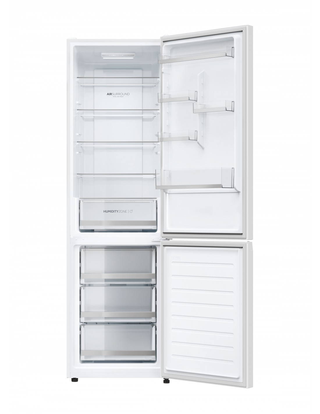 Haier HDW1620DNPW. Capacità netta totale: 377 L, Classe climatica: N-ST, Emissione acustica: 38 dB. Capacità netta frigorifero: 258 L, No Frost (frigorifero), Sistema Multi-Airflow (frigorifero), Luce interna, Numero di ripiani frigorifero: 5. Capacità netta congelatore: 119 L, Capacità di congelamento: 7 kg/24h, No Frost (congelatore). Compartimento zona fresca. Classe efficienza energetica: D, Consumo energetico annuo: 211 kWh. Colore del prodotto: Bianco