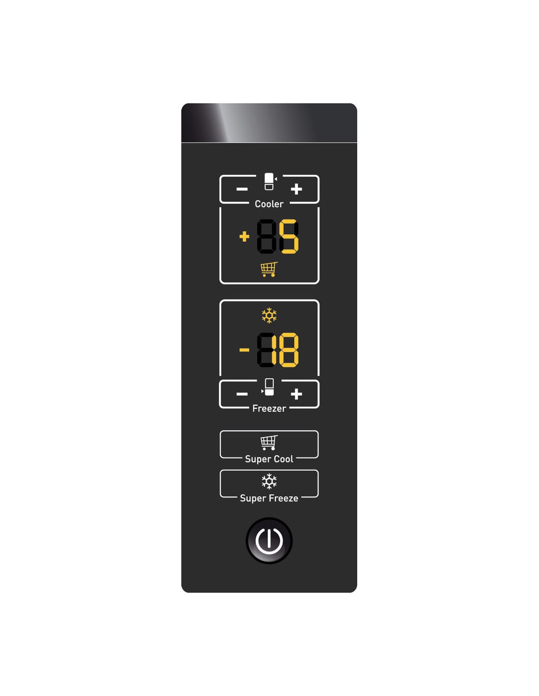 Abbassa la temperatura del congelatore e consente di congelare alimenti e produrre ghiaccio in tempi record. Una volta congelato il prodotto, la temperatura torna al livello programmato.