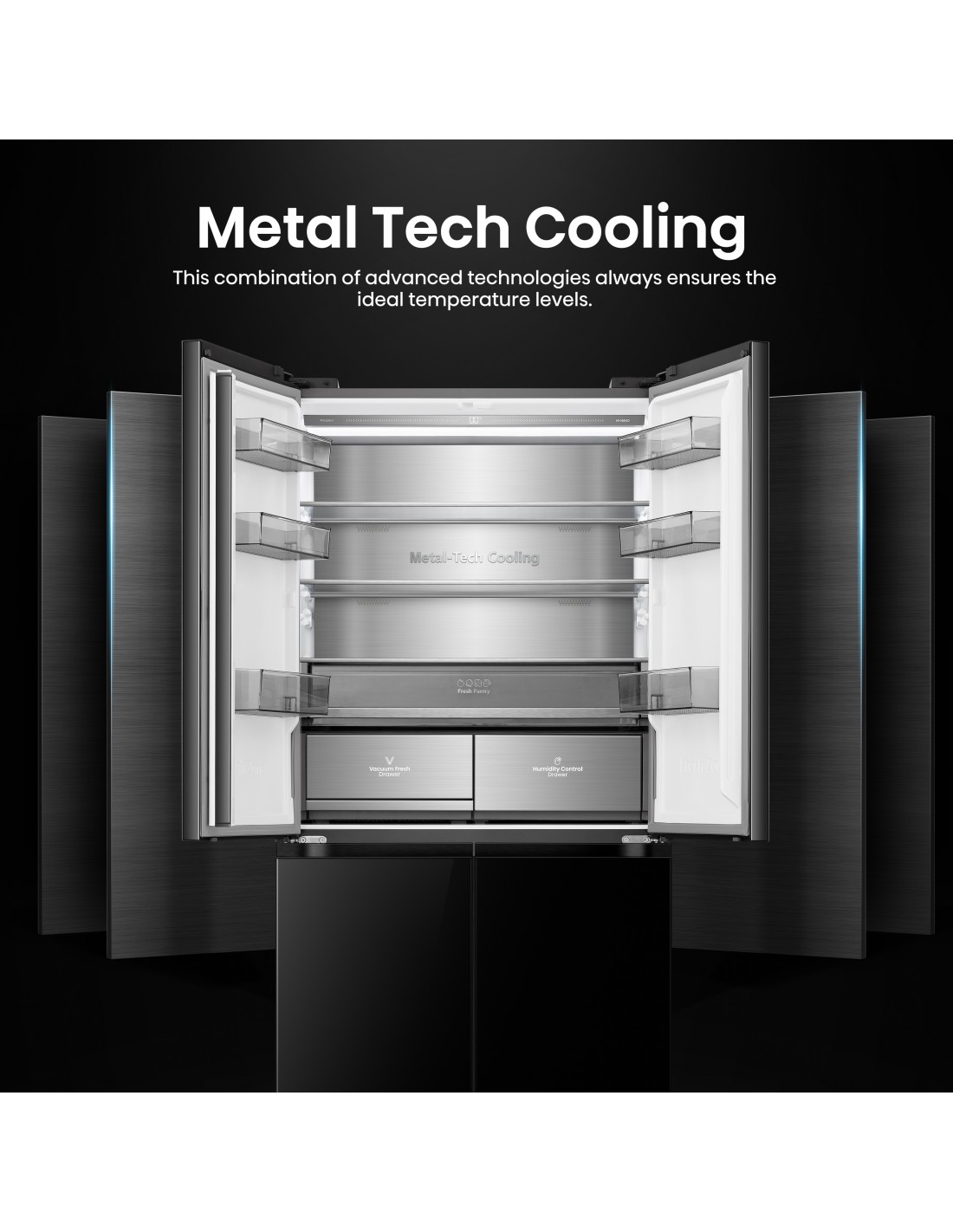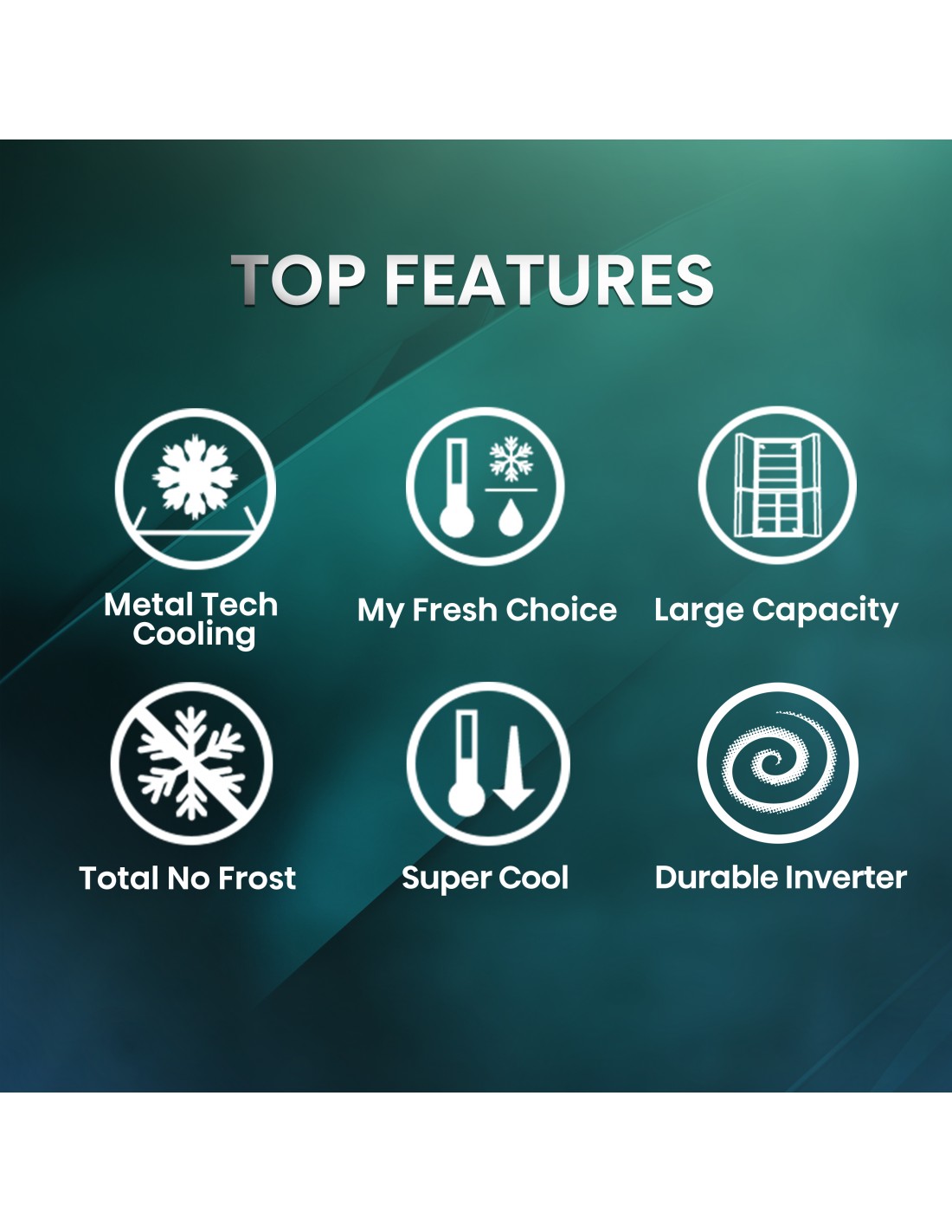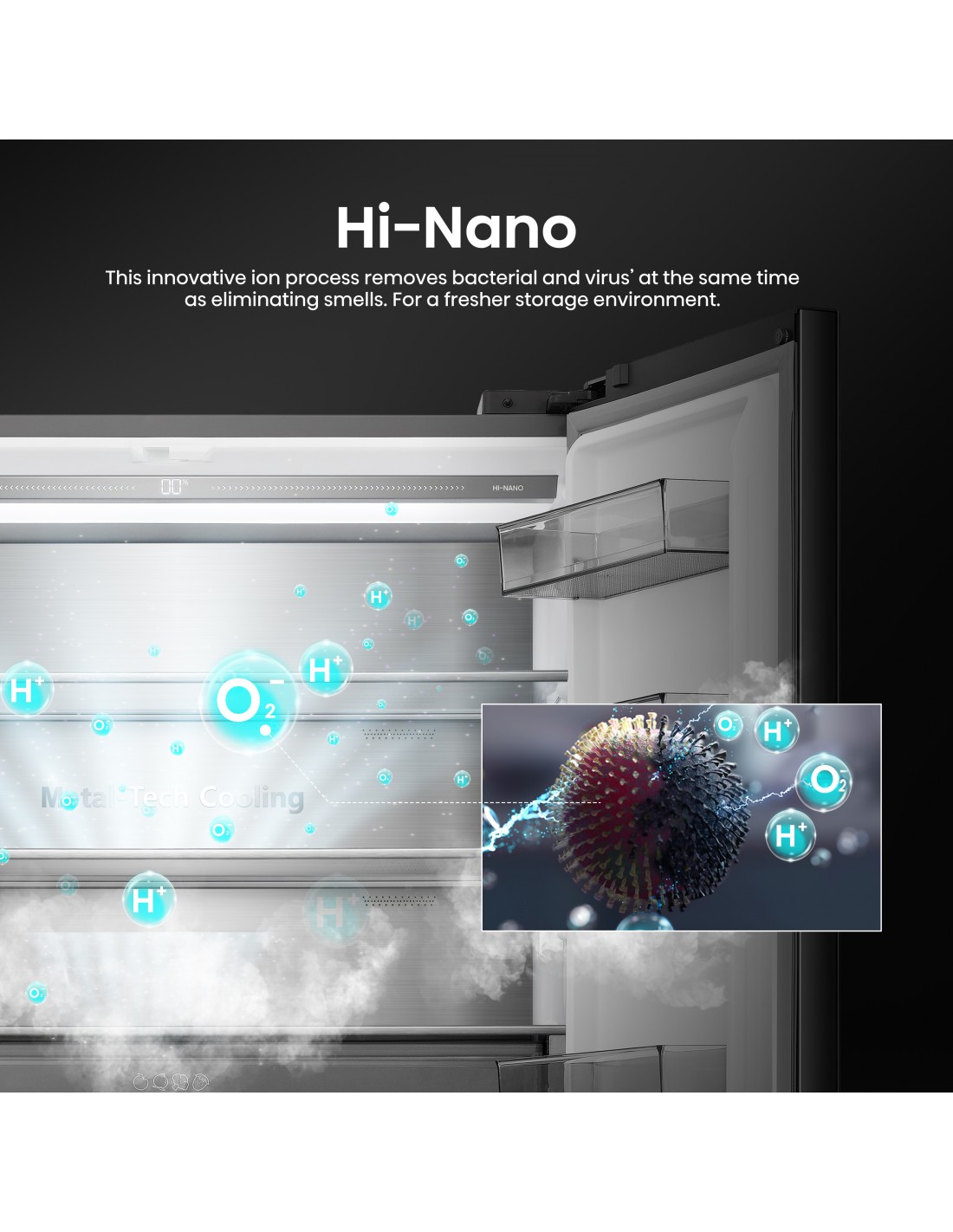 Tecnologie Hisense (conservazione degli alimenti) | Antibacterial Guard, Flexi Hinge, Hi-NANO, Inverter Compressor, Kitchen Fit Desgin, Metal-Tech Cooling, Micro Vent Cooling Technology, Multi-Air Flow, My Fresh Choice (5°c), Premium Glass Door Design, PureFlat Design, Recessed Handle, Super Freeze |