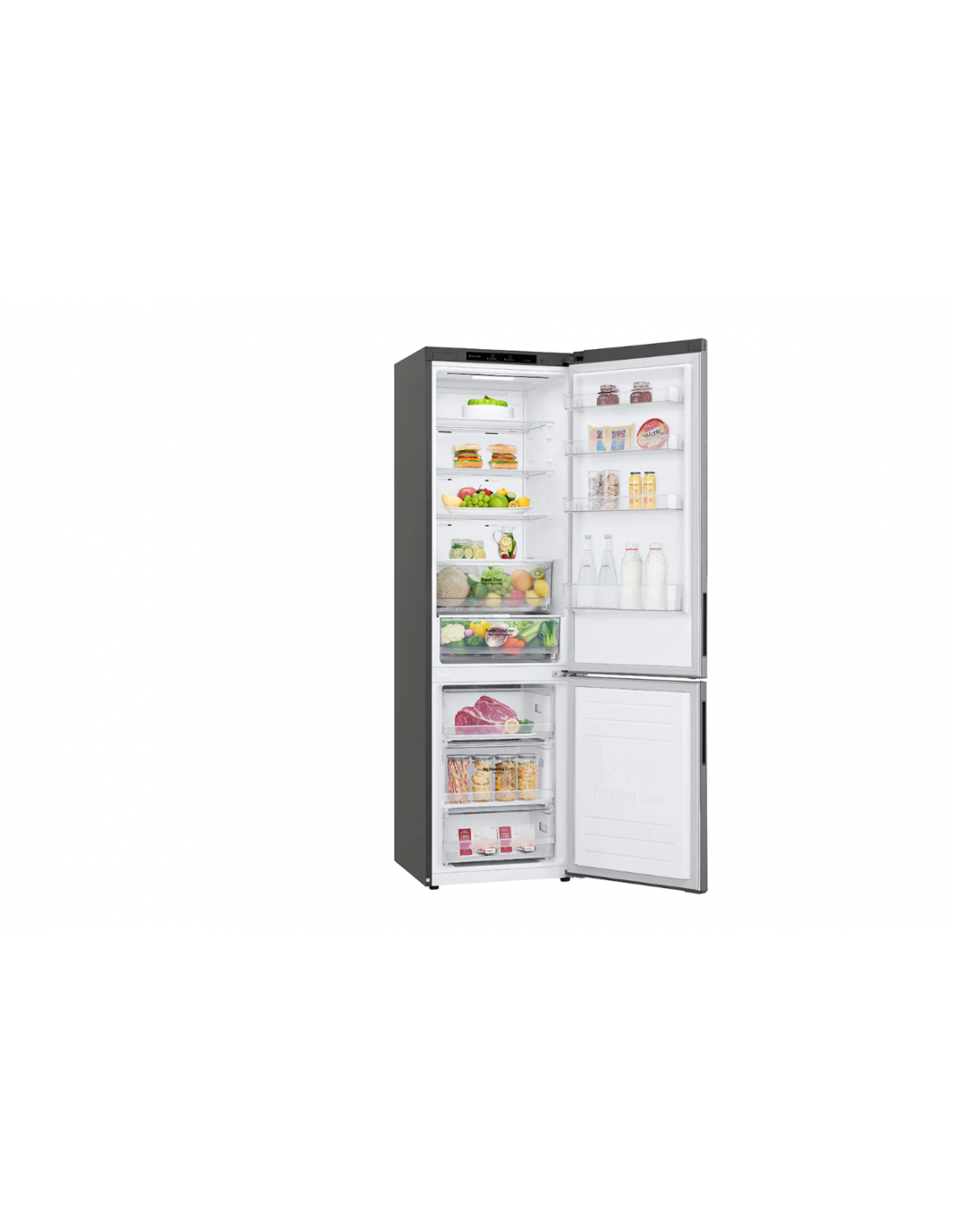 LG GBP62PZNCC1. Capacità netta totale: 384 L. Cerniera porta: Destra. Classe climatica: SN-T, Emissione acustica: 35 dB. Capacità netta frigorifero: 277 L, No Frost (frigorifero), Luce interna, Numero di ripiani frigorifero: 4. Capacità netta congelatore: 107 L, Capacità di congelamento: 10 kg/24h, No Frost (congelatore). Compartimento zona fresca. Classe efficienza energetica: C, Consumo energetico annuo: 172 kWh. Colore del prodotto: Acciaio inox