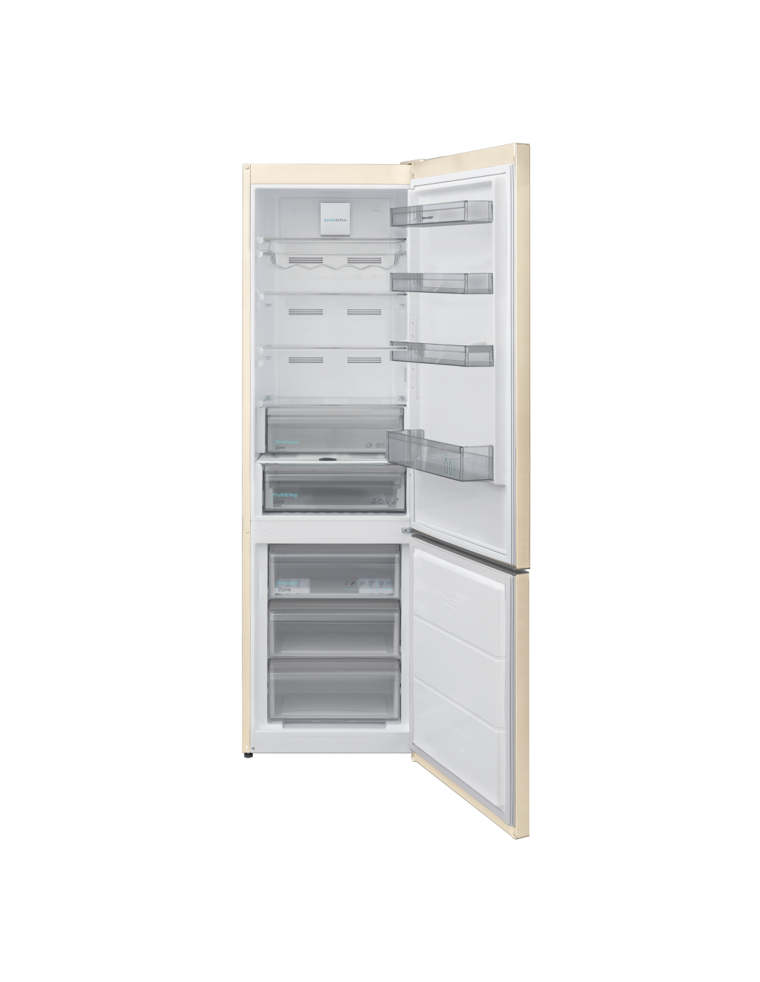 Sharp SJ-NBA32DMXJD. Capacità netta totale: 367 L. Cerniera porta: Destra. Classe climatica: SN-T, Emissione acustica: 37 dB. Capacità netta frigorifero: 266 L, No Frost (frigorifero), Numero di ripiani frigorifero: 4, Numero di cassetti per verdura: 2. Capacità netta congelatore: 101 L, No Frost (congelatore). Compartimento zona fresca. Classe efficienza energetica: D, Consumo energetico annuo: 200 kWh. Colore del prodotto: Beige