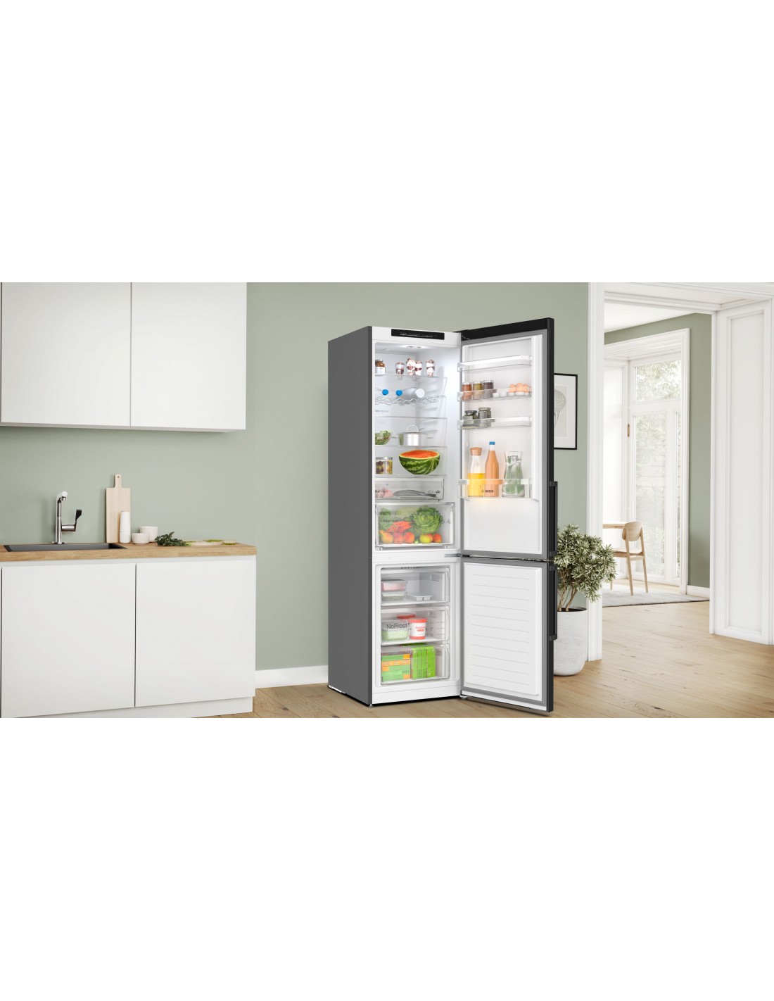 Serie 4 Frigorifero Combinato da libera installazione 203 X 60 cm Acciaio anti-impronta Classe C, 363 L, SN-T, 15 kg/24h, C, Compartimento zona fresca, Grigio