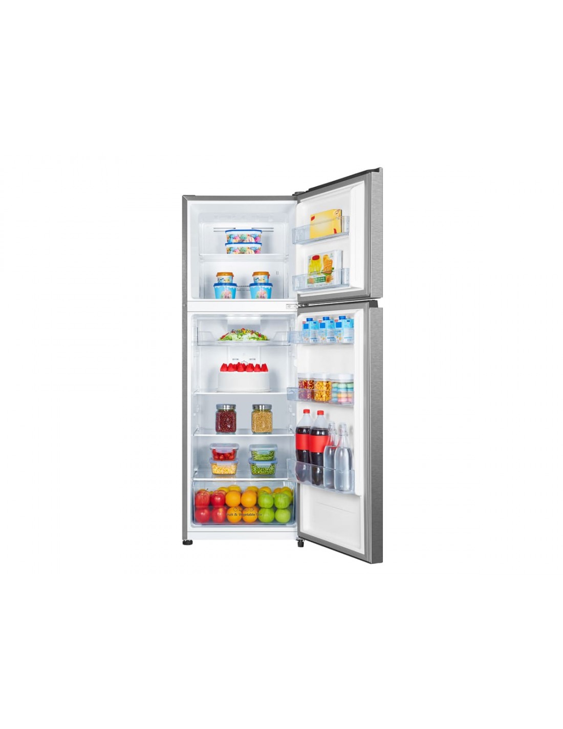 Hisense RT422N4ACE. Capacità netta totale: 325 L. Cerniera porta: Destra. Classe climatica: SN-T, Emissione acustica: 40 dB. Capacità netta frigorifero: 252 L, No Frost (frigorifero), Sistema Multi-Airflow (frigorifero), Luce interna, Numero di ripiani frigorifero: 4. Capacità netta congelatore: 73 L, Capacità di congelamento: 3 kg/24h, No Frost (congelatore). Classe efficienza energetica: E, Consumo energetico annuo: 216 kWh. Colore del prodotto: Acciaio inox