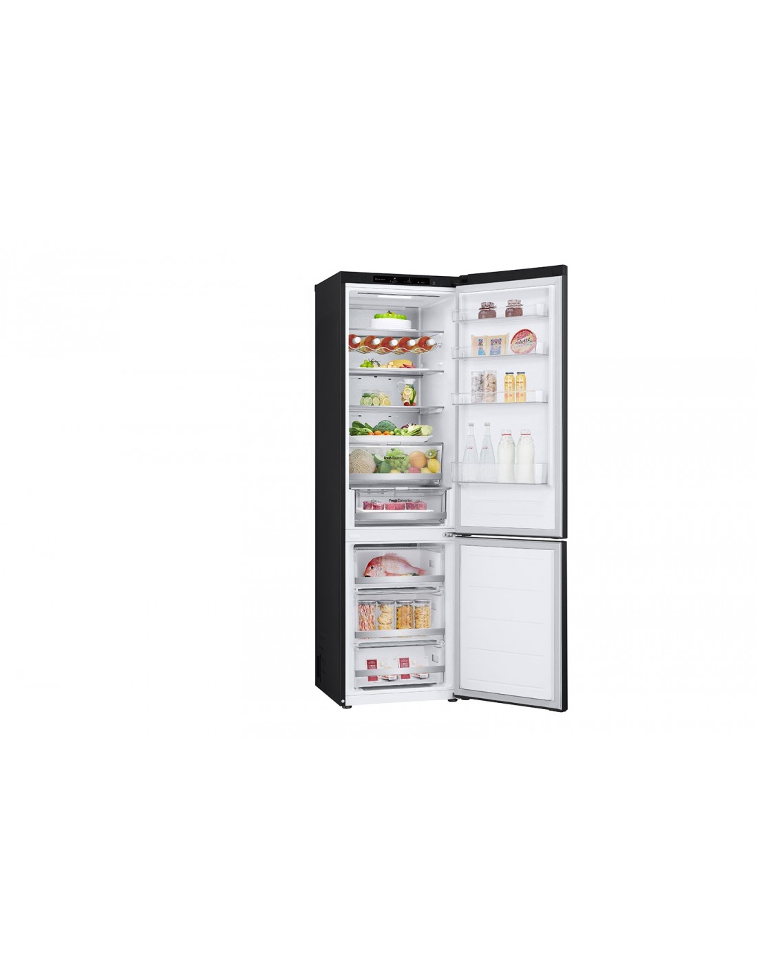 LG GBV7280AEV. Posizionamento dell'apparecchio: Libera installazione, Colore del prodotto: Nero, Tipo di display: LED. Capacità netta totale: 387 L, Classe climatica: T, Classe emissione rumore: B. Capacità netta frigorifero: 277 L, Tipo di lampada: LED. Posizione del congelatore: Posto in basso, Capacità netta congelatore: 110 L, Autonomia senza energia elettrica: 7 h. Classe efficienza energetica: A, Consumo energetico annuo: 111 kWh, Scala di efficienza energetica: Da A a G