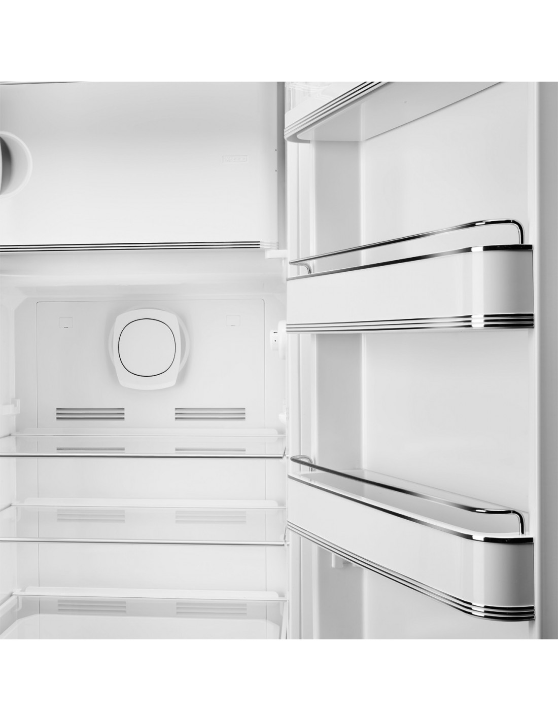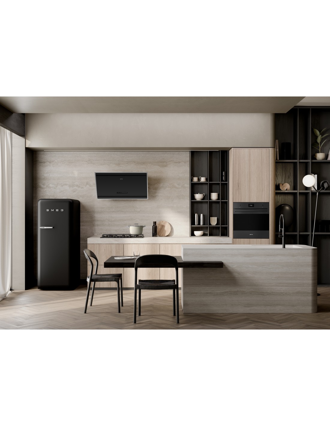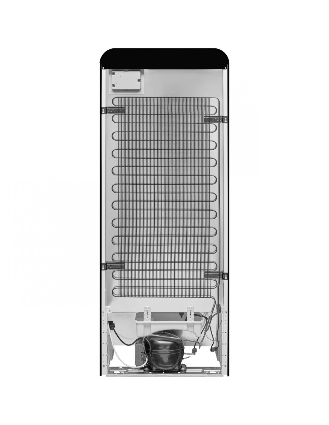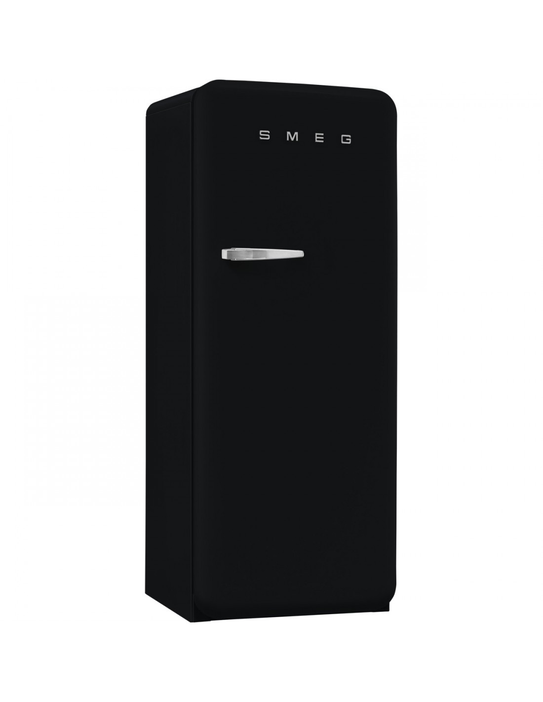Smeg FAB28RDBLM6. Capacità netta frigorifero: 244 L, Classe climatica: SN-T, Emissione acustica: 35 dB. Numero di ripiani frigorifero: 2, Numero di cassetti per verdura: 1. Tipo di lampada: LED. Cerniera porta: Destra. Consumo energetico annuo: 104 kWh, Classe efficienza energetica: D. Peso: 73,5 kg. Colore del prodotto: Nero