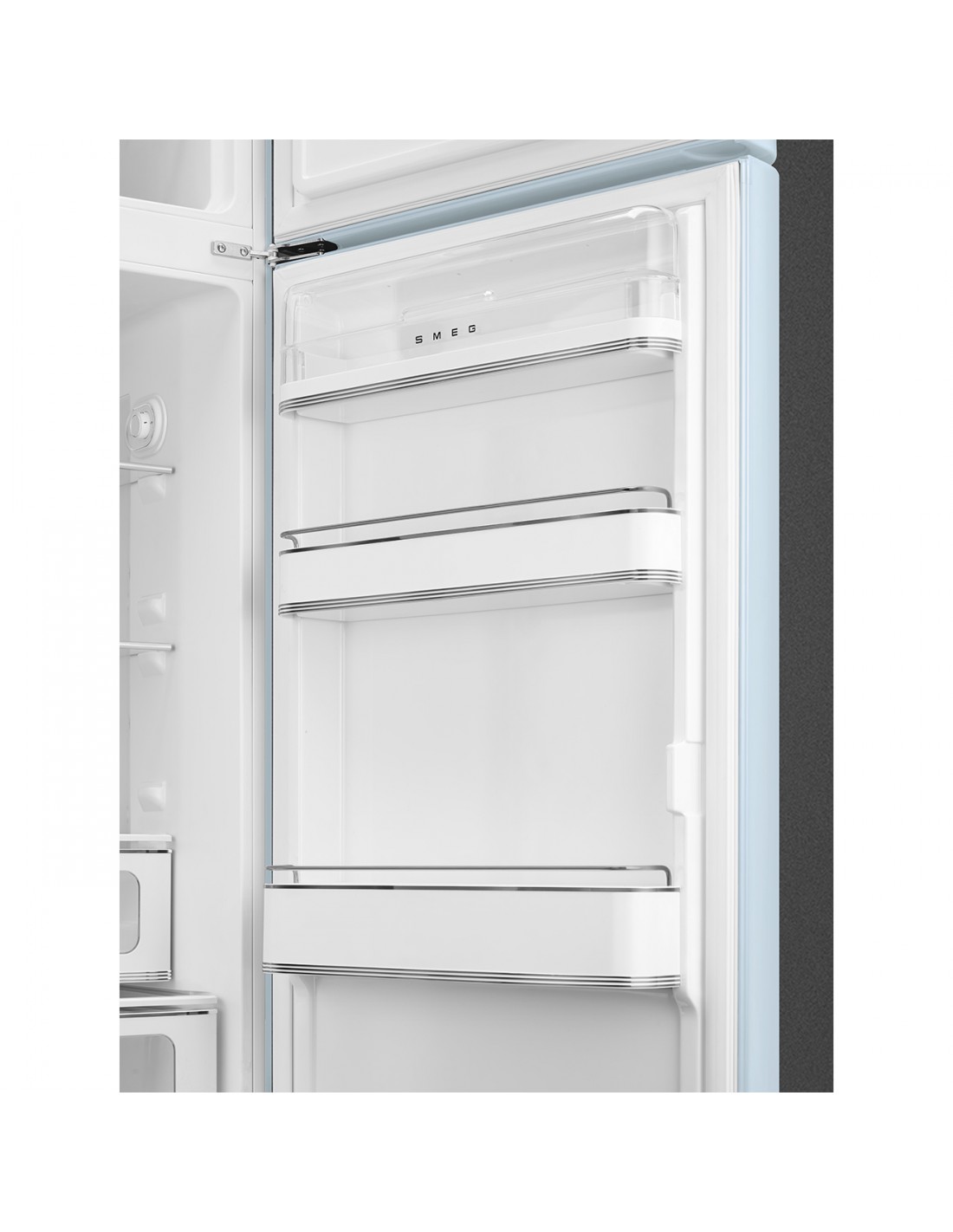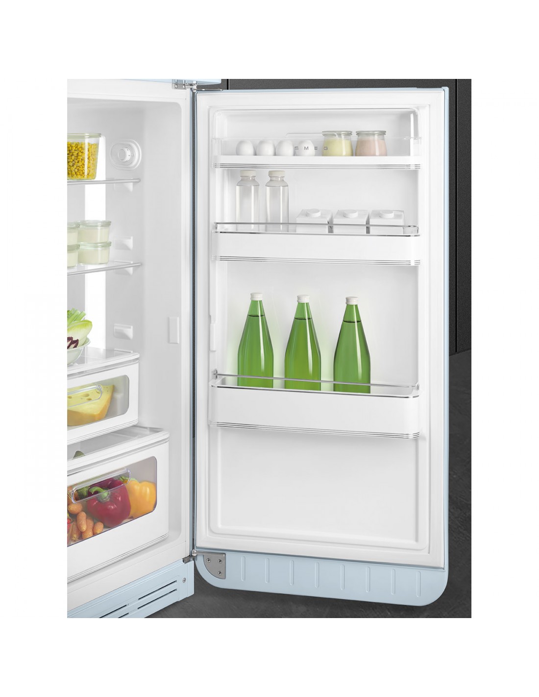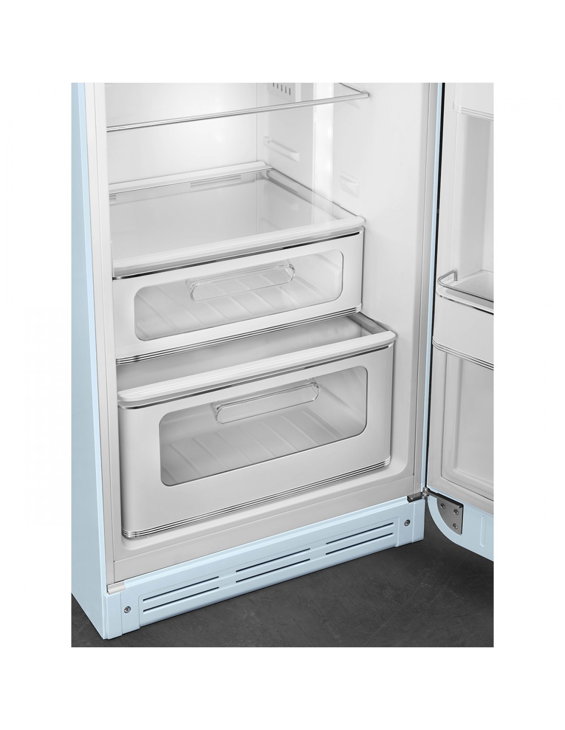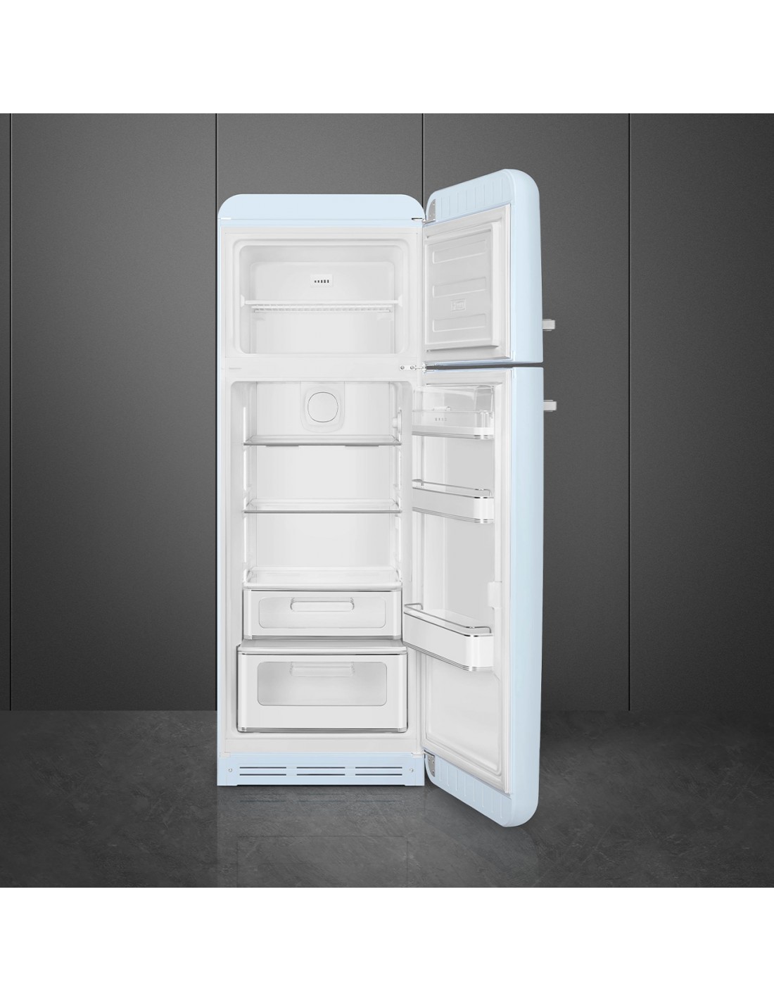 Smeg FAB30RPB6. Capacità netta totale: 294 L. Cerniera porta: Destra. Classe climatica: SN-T, Emissione acustica: 34 dB. Capacità netta frigorifero: 222 L, No Frost (frigorifero), Sistema Multi-Airflow (frigorifero), Luce interna, Numero di ripiani frigorifero: 2. Capacità netta congelatore: 72 L, Capacità di congelamento: 4 kg/24h. Compartimento zona fresca. Classe efficienza energetica: C, Consumo energetico annuo: 135 kWh. Colore del prodotto: Blu