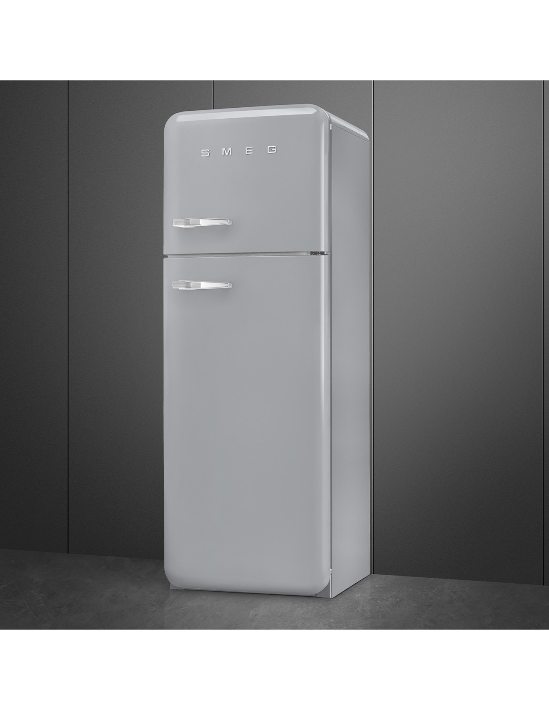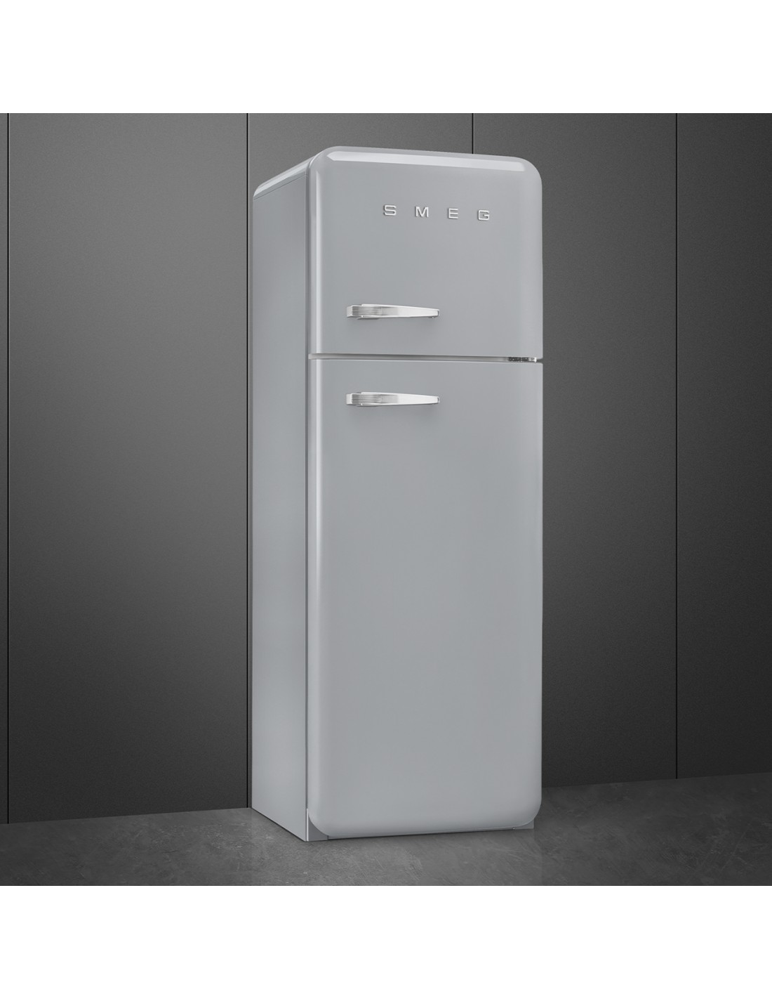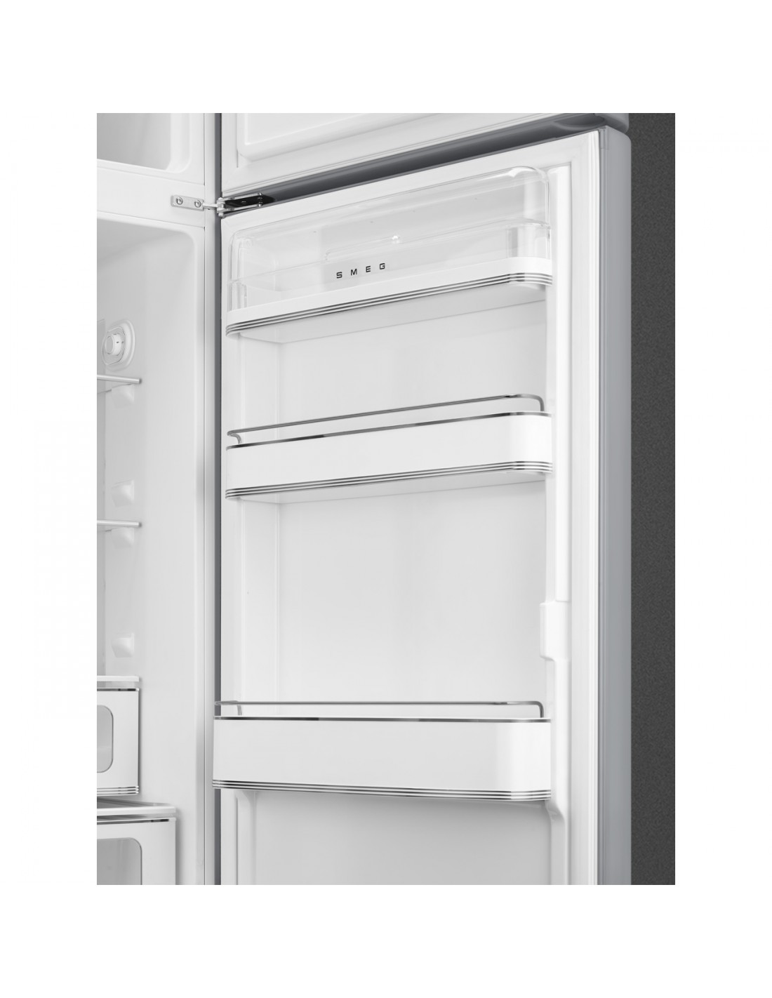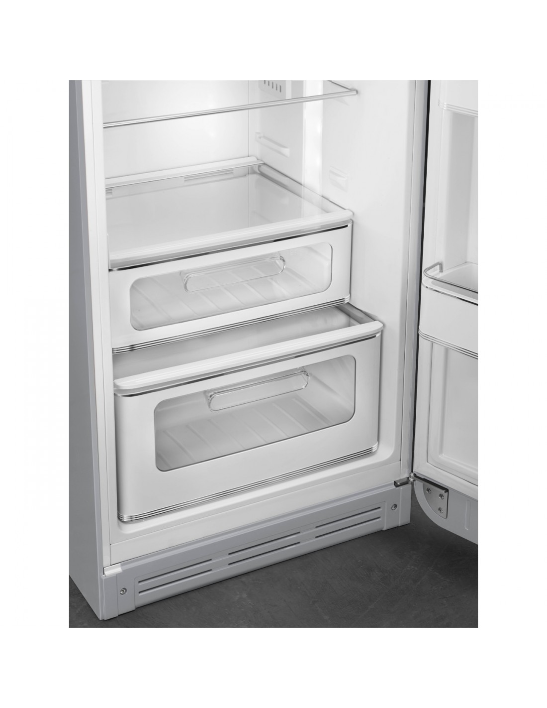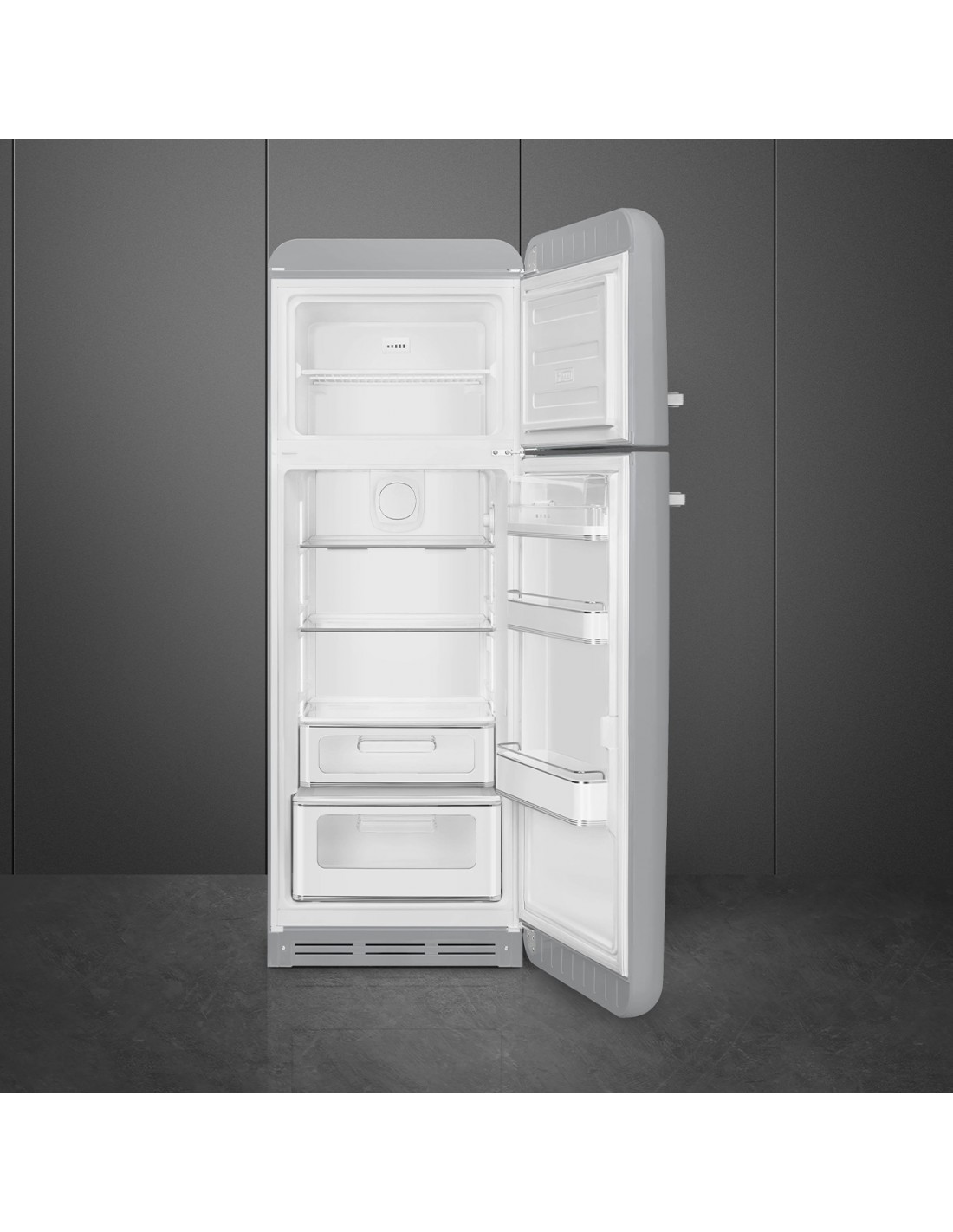 Smeg FAB30RSV6. Capacità netta totale: 294 L. Cerniera porta: Destra. Classe climatica: SN-T, Emissione acustica: 34 dB. Capacità netta frigorifero: 222 L, No Frost (frigorifero), Sistema Multi-Airflow (frigorifero), Luce interna, Numero di ripiani frigorifero: 2. Capacità netta congelatore: 72 L, Capacità di congelamento: 4 kg/24h. Compartimento zona fresca. Classe efficienza energetica: C, Consumo energetico annuo: 135 kWh. Colore del prodotto: Argento