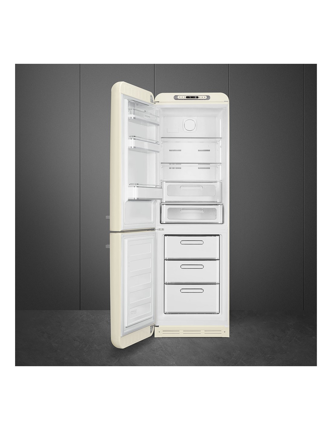 Smeg FAB32LCR6. Capacità netta totale: 234 L. Cerniera porta: Sinistra, Tipo di display: LED. Classe climatica: SN-T, Emissione acustica: 35 dB. Capacità netta frigorifero: 234 L, No Frost (frigorifero), Sistema Multi-Airflow (frigorifero), Luce interna. Capacità netta congelatore: 97 L, Capacità di congelamento: 6 kg/24h, No Frost (congelatore). Compartimento zona fresca. Classe efficienza energetica: D, Consumo energetico annuo: 158 kWh