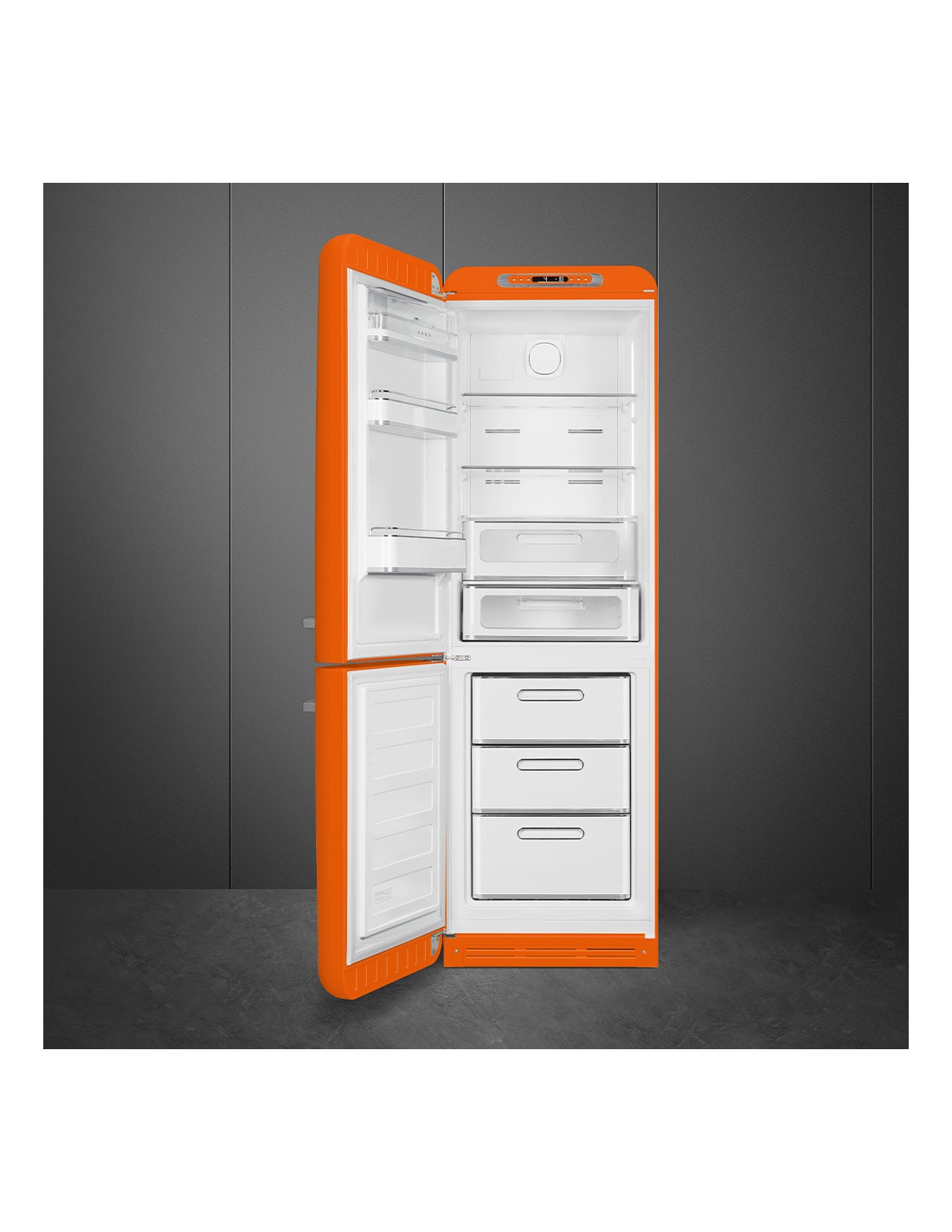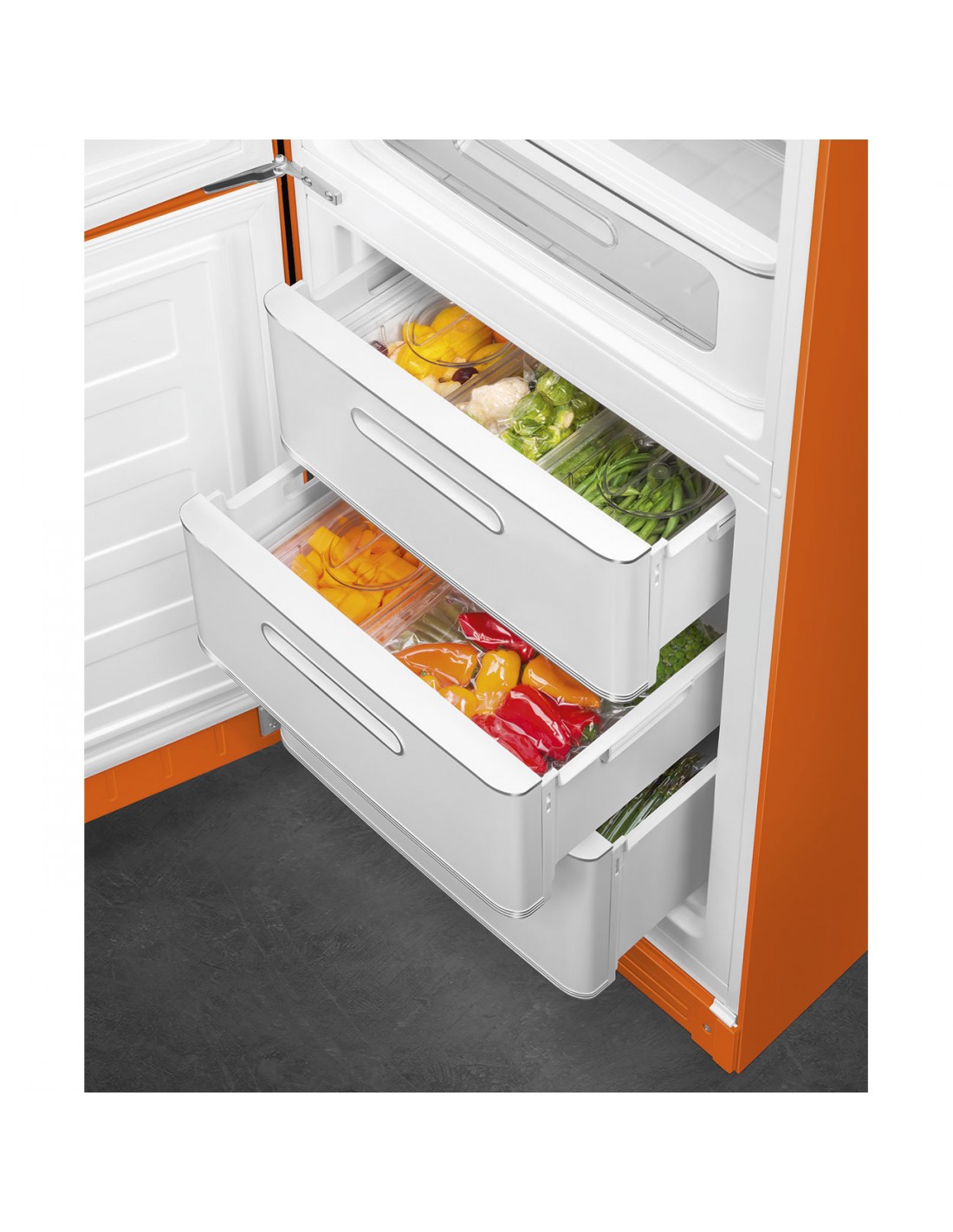 Smeg FAB32LOR6. Capacità netta totale: 234 L. Cerniera porta: Sinistra, Tipo di display: LED. Classe climatica: SN-T, Emissione acustica: 35 dB. Capacità netta frigorifero: 234 L, No Frost (frigorifero), Sistema Multi-Airflow (frigorifero), Luce interna. Capacità netta congelatore: 97 L, Capacità di congelamento: 6 kg/24h, No Frost (congelatore). Compartimento zona fresca. Classe efficienza energetica: D, Consumo energetico annuo: 158 kWh
