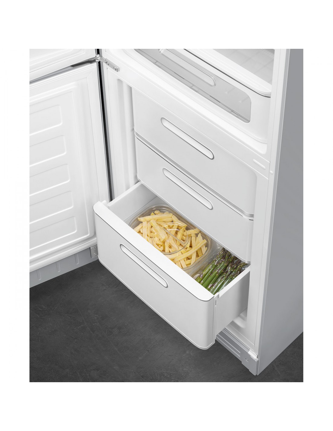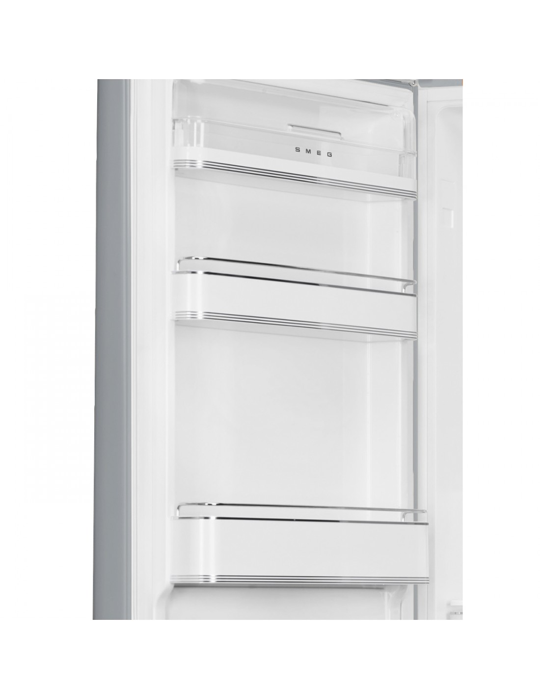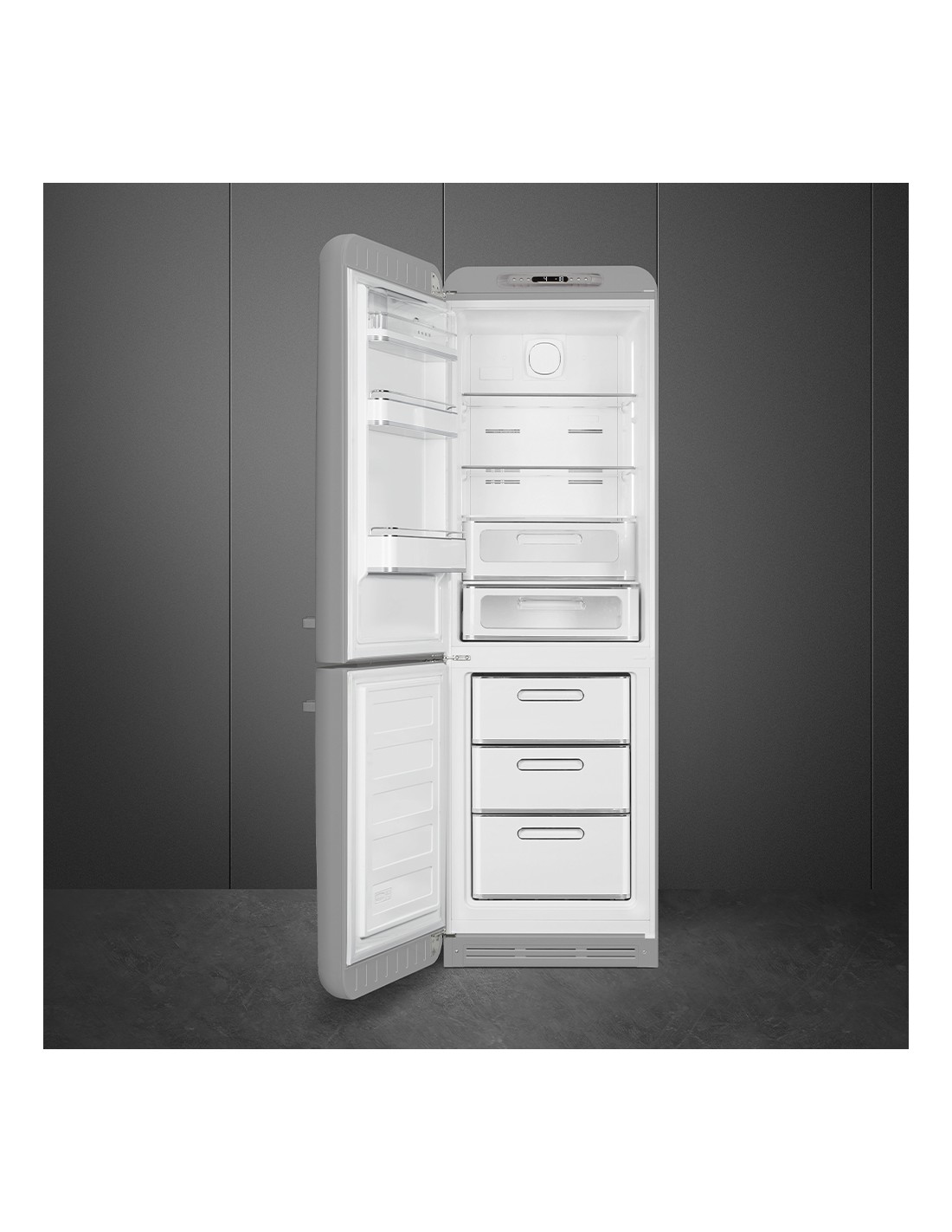 Smeg FAB32LSV6. Capacità netta totale: 234 L. Cerniera porta: Sinistra, Tipo di display: LED. Classe climatica: SN-T, Emissione acustica: 35 dB. Capacità netta frigorifero: 234 L, No Frost (frigorifero), Sistema Multi-Airflow (frigorifero), Luce interna. Capacità netta congelatore: 97 L, Capacità di congelamento: 6 kg/24h, No Frost (congelatore). Compartimento zona fresca. Classe efficienza energetica: D, Consumo energetico annuo: 158 kWh