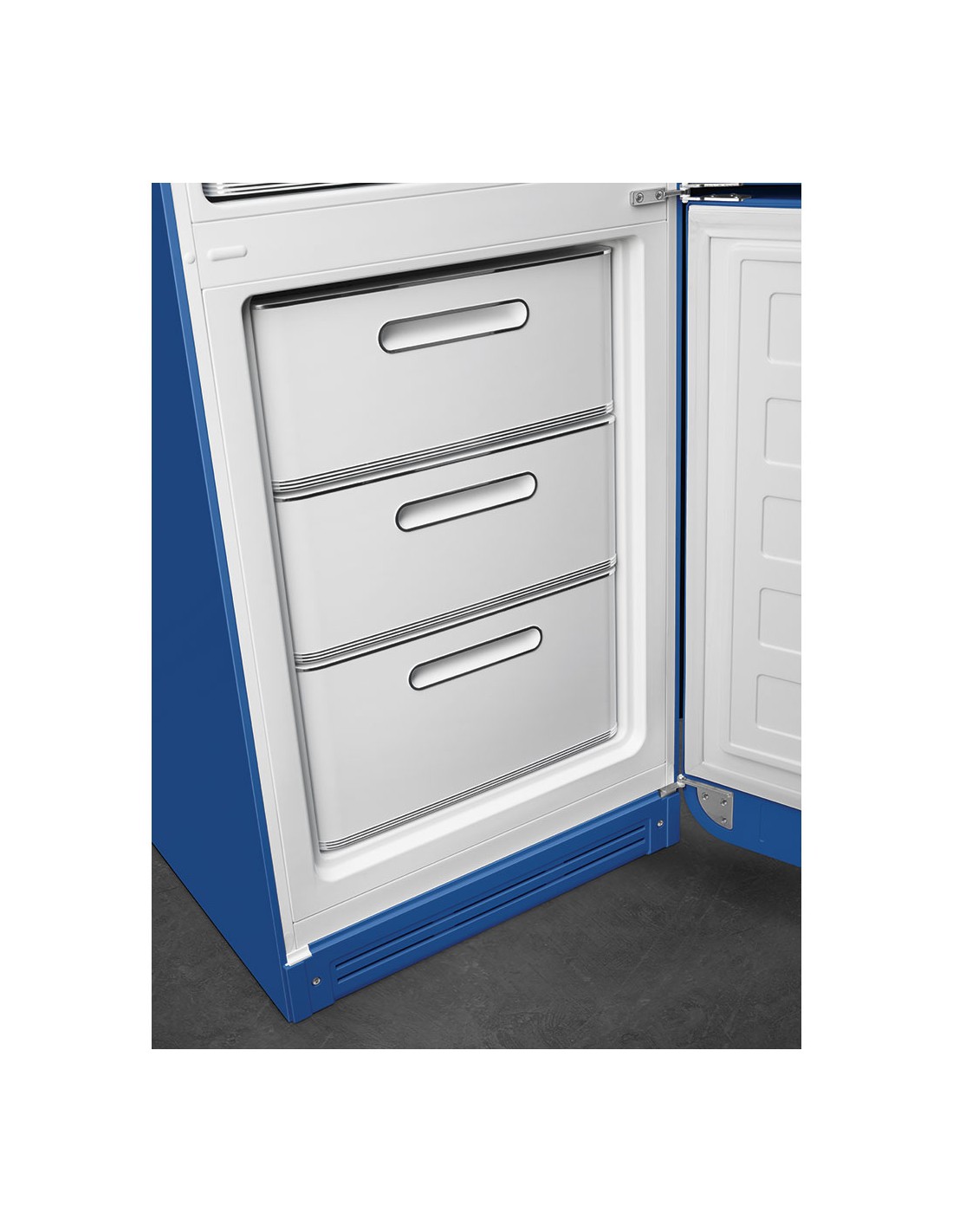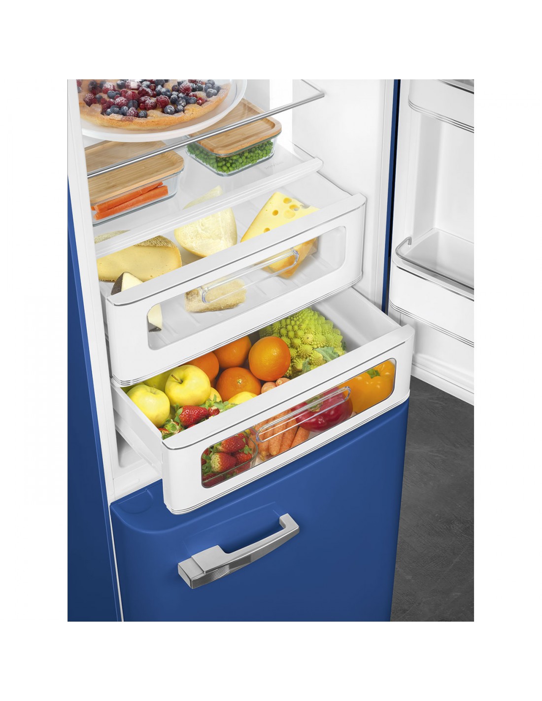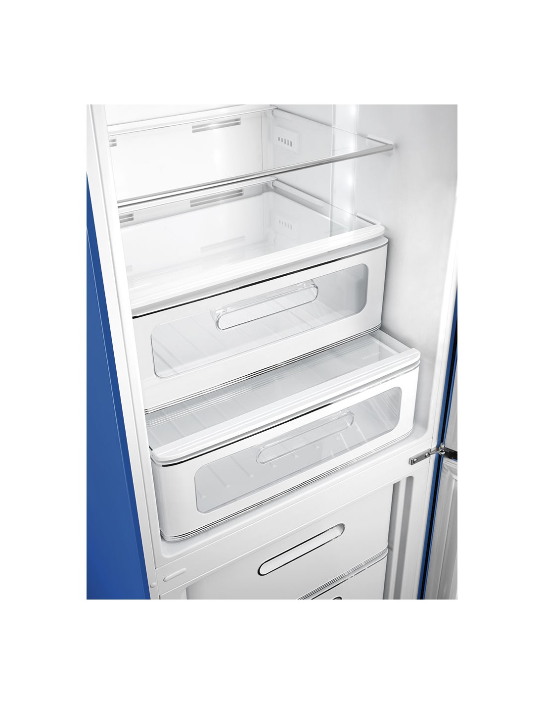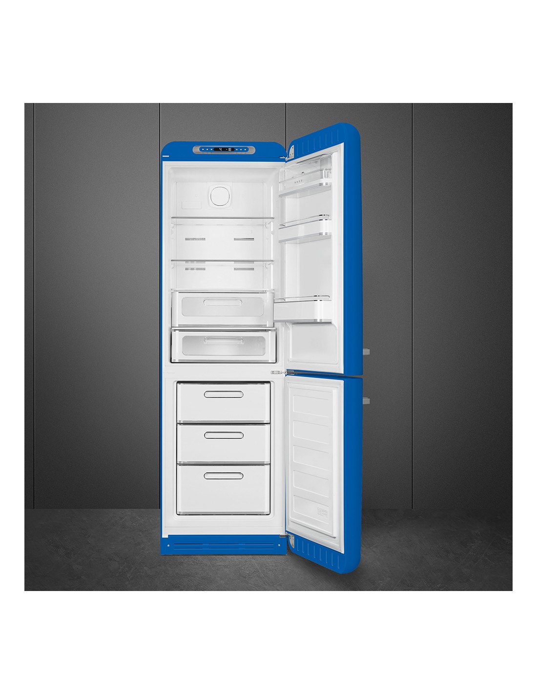 Smeg FAB32RBE6. Capacità netta totale: 234 L. Cerniera porta: Destra, Tipo di display: LED. Classe climatica: SN-T, Emissione acustica: 35 dB. Capacità netta frigorifero: 234 L, No Frost (frigorifero), Sistema Multi-Airflow (frigorifero), Luce interna. Capacità netta congelatore: 97 L, Capacità di congelamento: 6 kg/24h, No Frost (congelatore). Compartimento zona fresca. Classe efficienza energetica: D, Consumo energetico annuo: 158 kWh