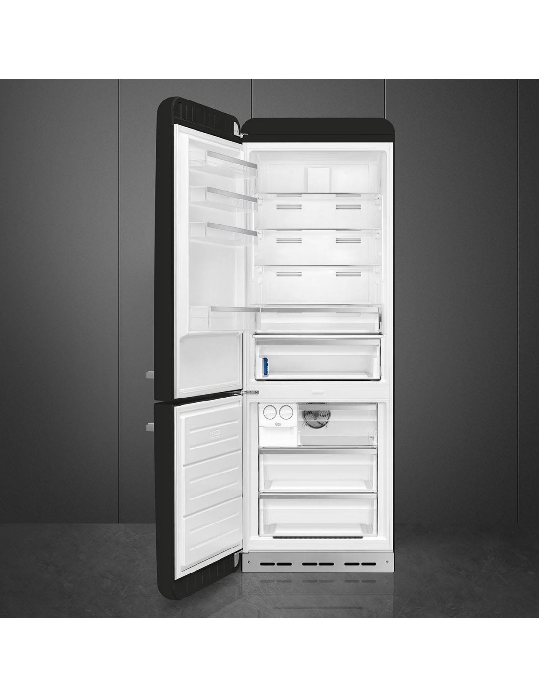 Smeg FAB38LBL6. Capacità netta totale: 481 L. Cerniera porta: Sinistra, Tipo di display: LED. Classe climatica: SN-T, Emissione acustica: 37 dB. Capacità netta frigorifero: 344 L, No Frost (frigorifero), Sistema Multi-Airflow (frigorifero), Luce interna. Capacità netta congelatore: 137,4 L, Capacità di congelamento: 8 kg/24h, No Frost (congelatore). Compartimento zona fresca. Classe efficienza energetica: D, Consumo energetico annuo: 321 kWh