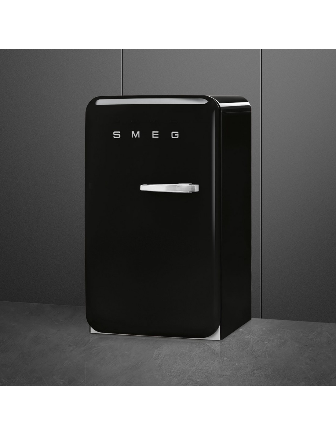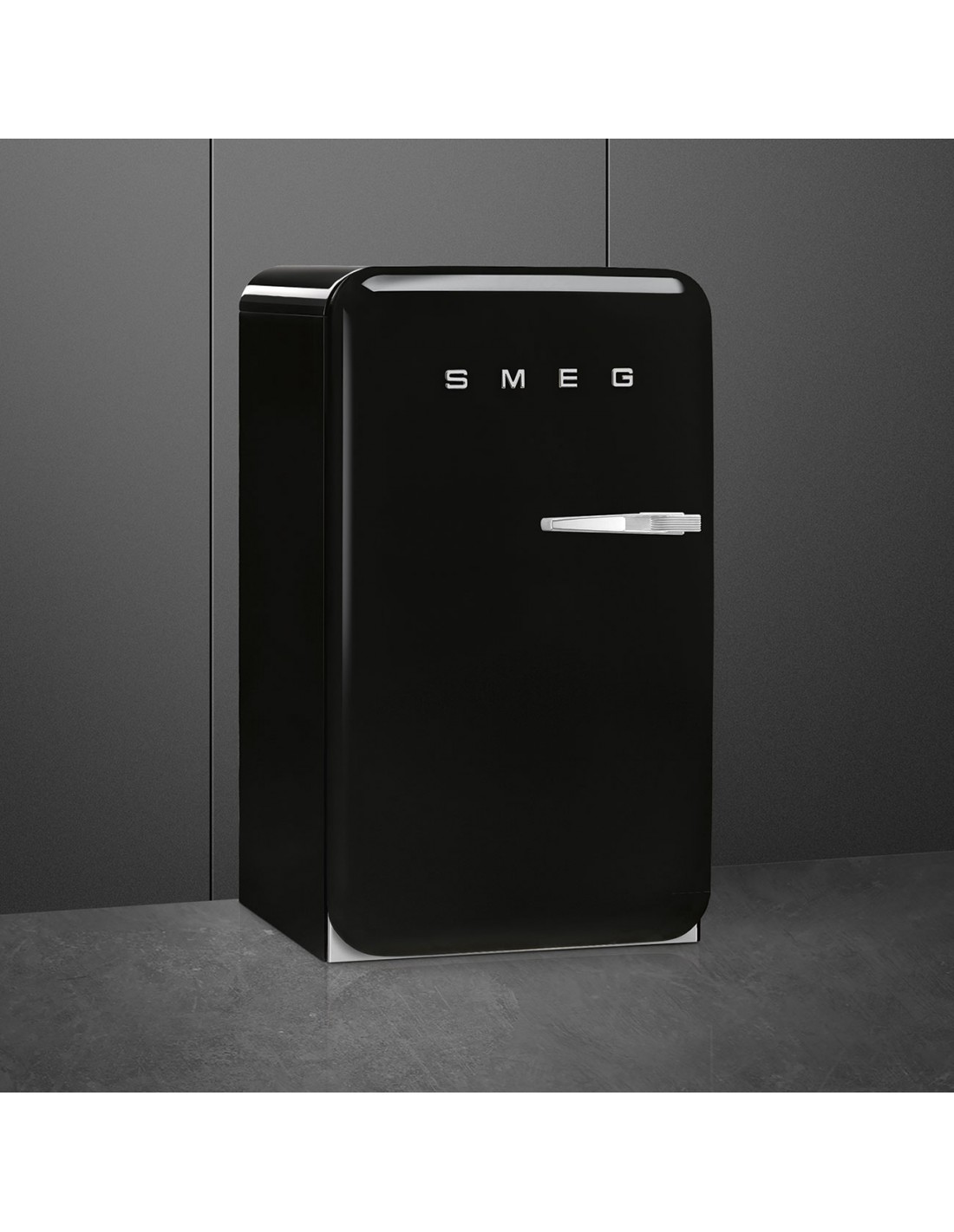 Smeg FAB10HLBL6. Capacità netta frigorifero: 135 L, Classe climatica: SN-T, Emissione acustica: 35 dB. Numero di ripiani frigorifero: 2. Tipo di lampada: LED. Cerniera porta: Sinistra. Consumo energetico annuo: 72 kWh, Classe efficienza energetica: D. Peso: 43 kg. Colore del prodotto: Nero