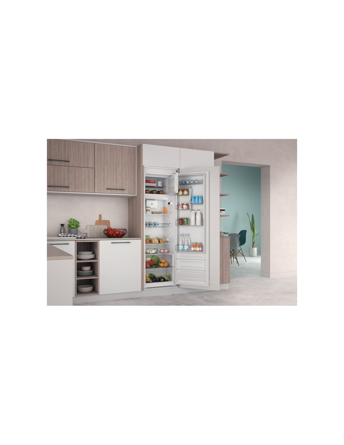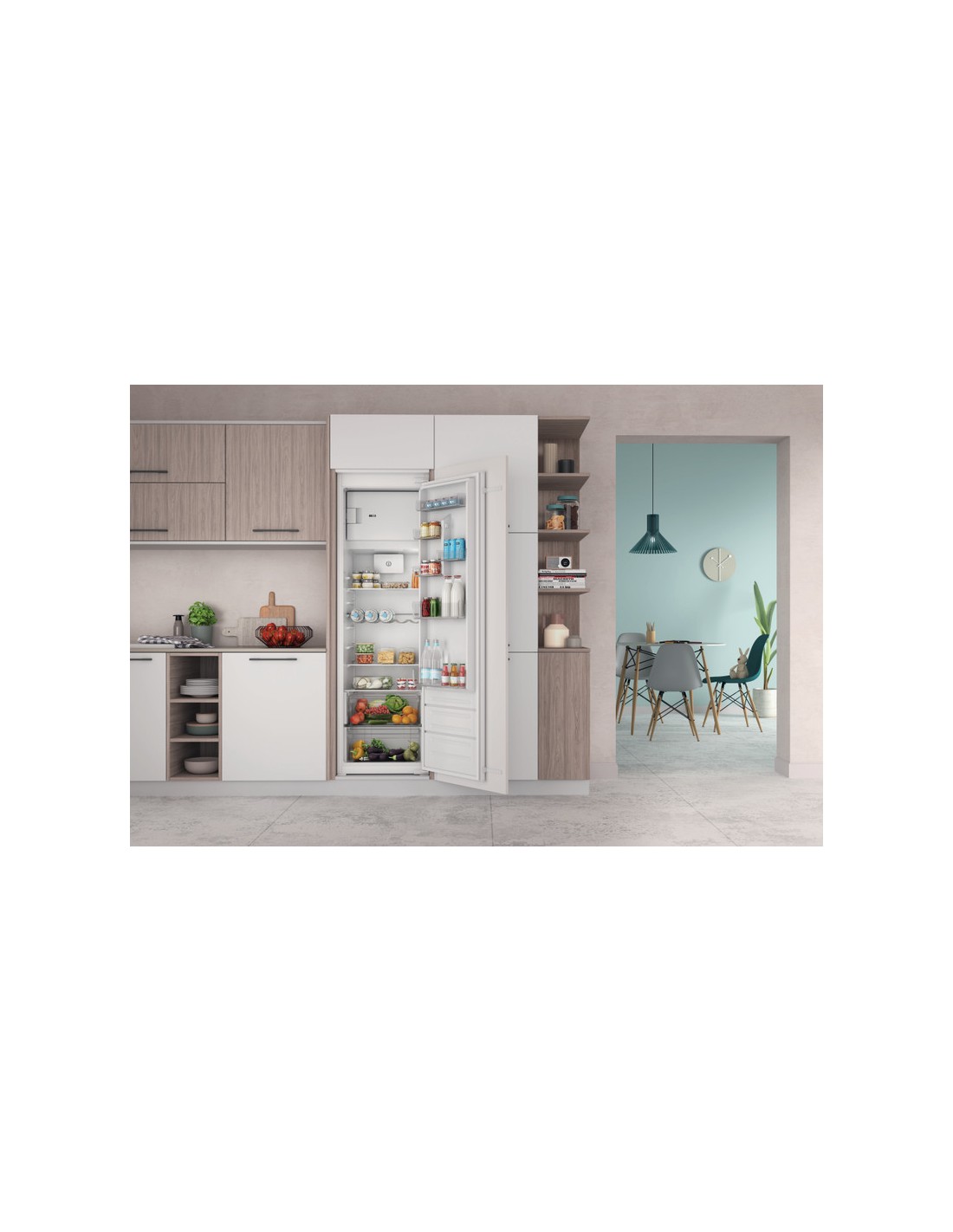Indesit INSD184011B1 FR. Posizionamento dell'apparecchio: Da incasso, Colore del prodotto: Bianco, Cerniera porta: Destra. Capacità netta totale: 285 L, Classe climatica: SN-T, Classe emissione rumore: B. Capacità netta frigorifero: 256 L, Tipo di lampada: LED. Posizione del congelatore: Posto in alto, Capacità netta congelatore: 29 L, Capacità di congelamento: 3 kg/24h. Lunghezza cavo: 2,45 m