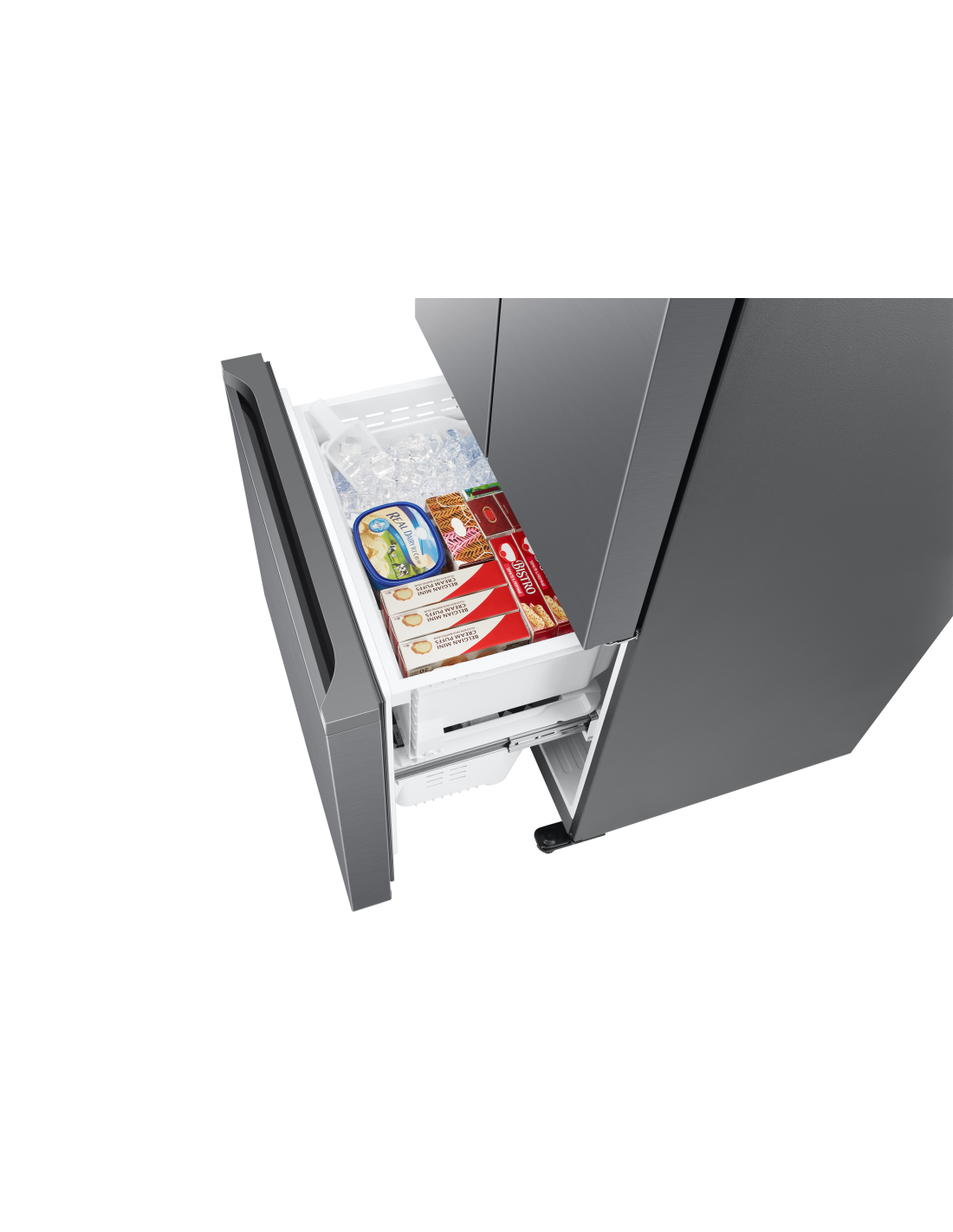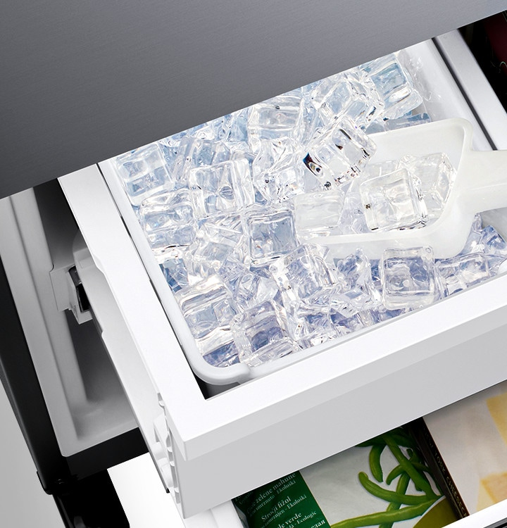 Assicurati di avere sempre ghiaccio a sufficienza da prelevare e servire in ogni situazione. La porta del frigorifero integra un dispenser automatico[4] , che produce e conserva una grande quantità di ghiaccio liberando spazio allinterno del freezer. E per la massima praticità, il cestello può essere inclinato per raccogliere il ghiaccio oppure rimosso e trasportato ovunque si desideri.
