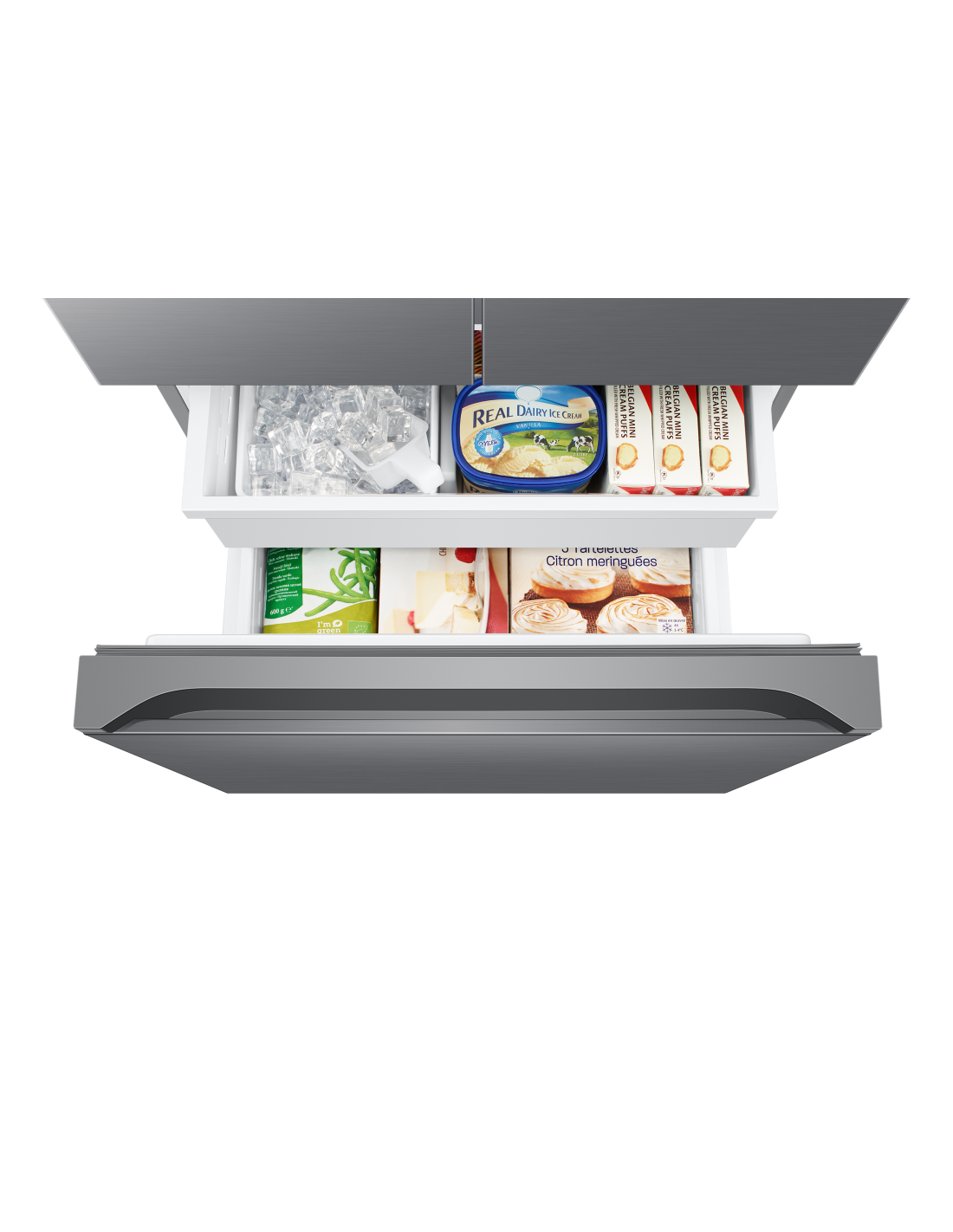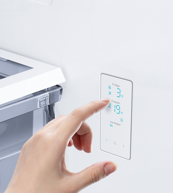 Anche la velocità è importante. Premendo un pulsante, la funzione Power Cool fa circolare velocemente aria fredda nel frigorifero per raffreddare rapidamente cibi e bevande. La funzione Power Freeze crea un rapido getto di aria fredda nel freezer. È il massimo per congelare o raffreddare i cibi al punto giusto, ma anche per preparare il ghiaccio.