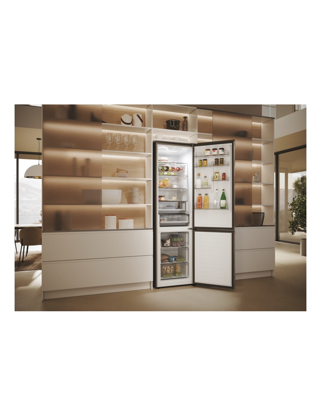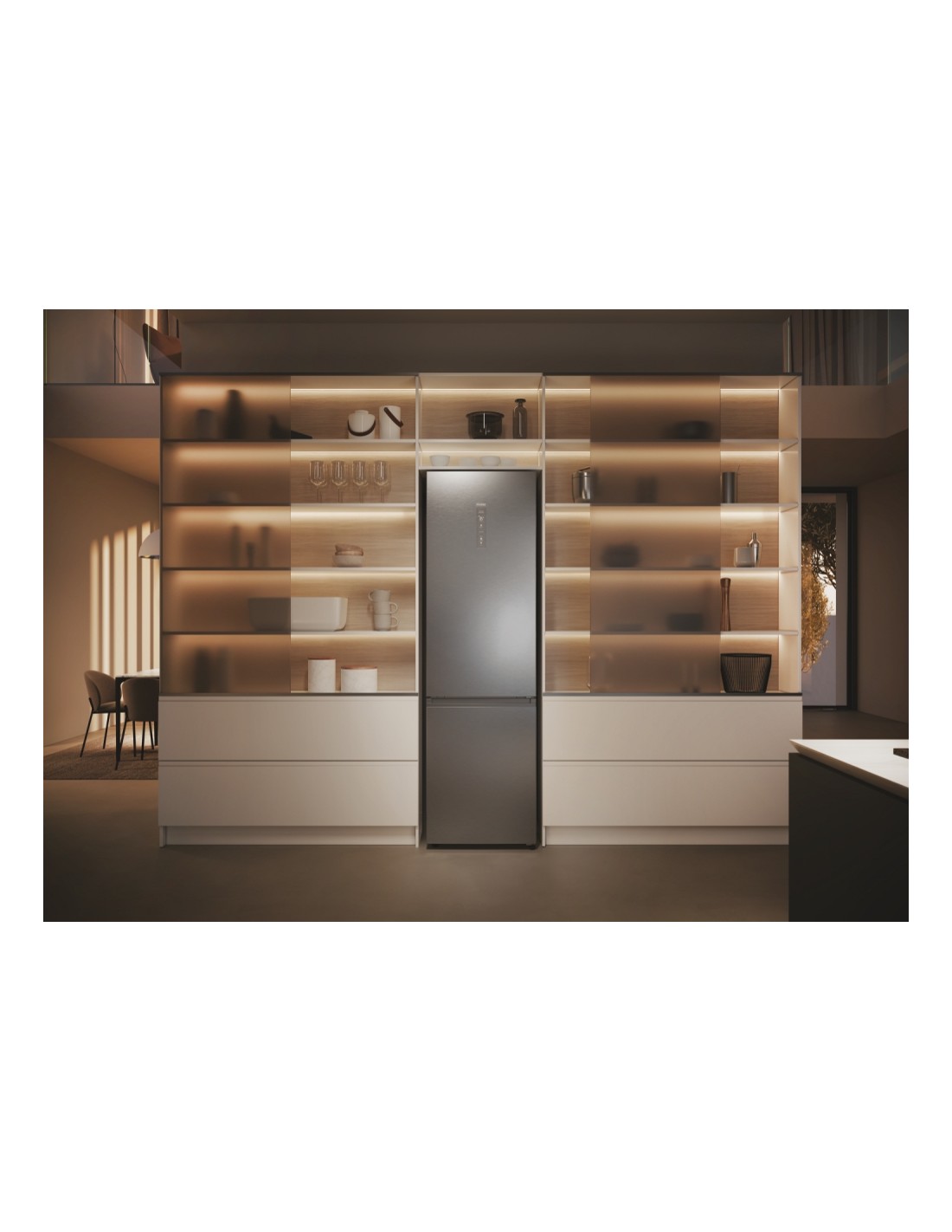 Haier 2D 60 Serie 5 Pro HDPW5620ANPK. Capacità netta totale: 409 L. Cerniera porta: Destra, Tipo di display: LED. Classe climatica: SN-T, Emissione acustica: 35 dB. Capacità netta frigorifero: 289 L, No Frost (frigorifero), Sistema Multi-Airflow (frigorifero), Luce interna. Capacità netta congelatore: 120 L, Capacità di congelamento: 10 kg/24h, No Frost (congelatore). Compartimento zona fresca. Classe efficienza energetica: A, Consumo energetico annuo: 114 kWh