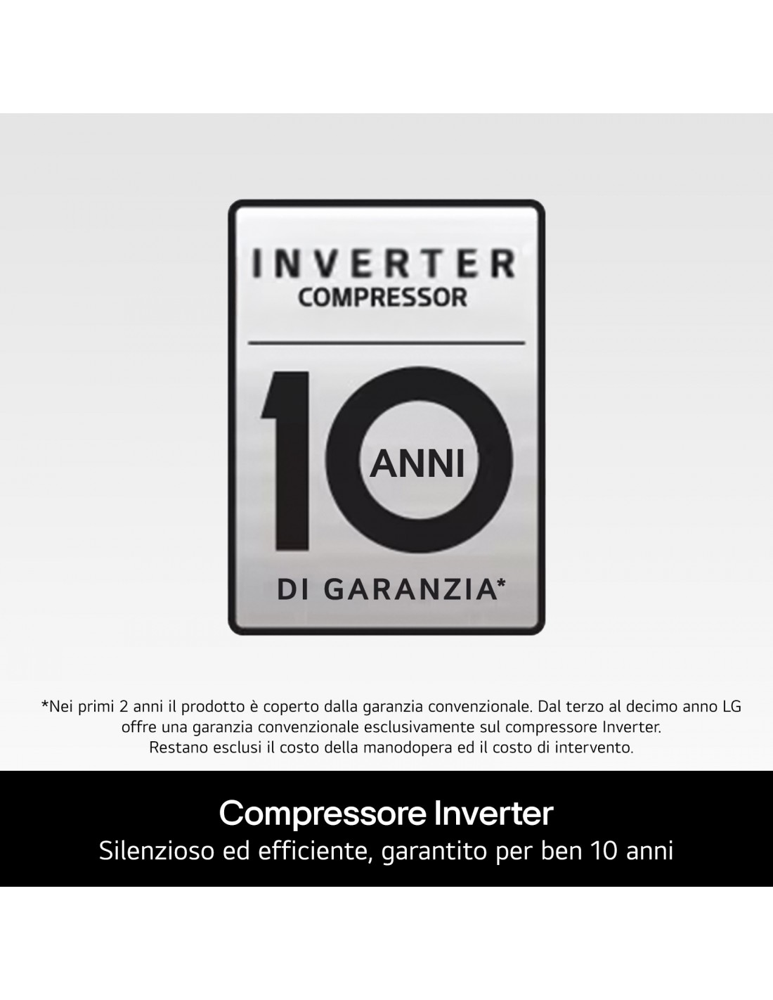 *10 anni di garanzia sul Compressore Inverter. Manodopera e intervento esclusi."