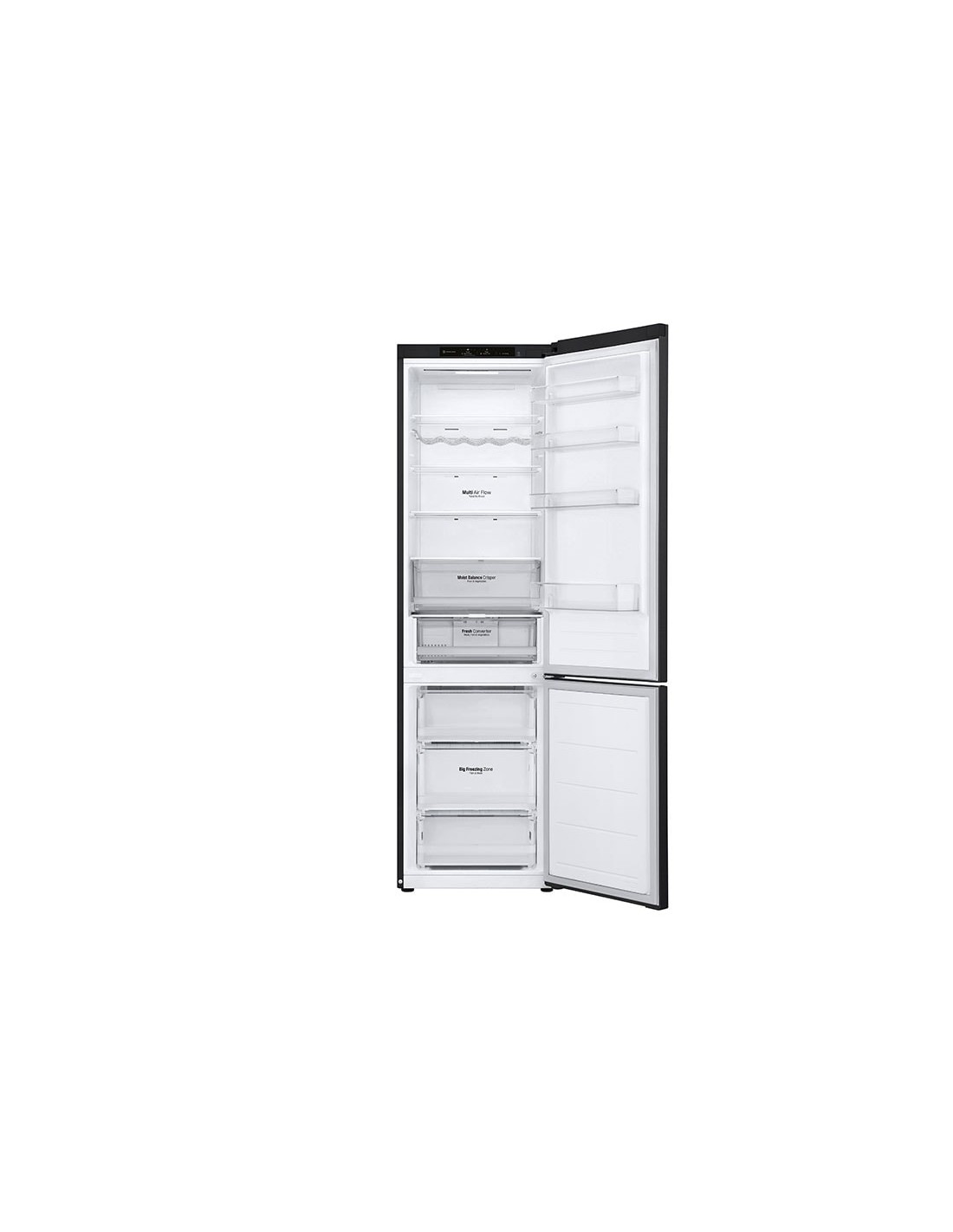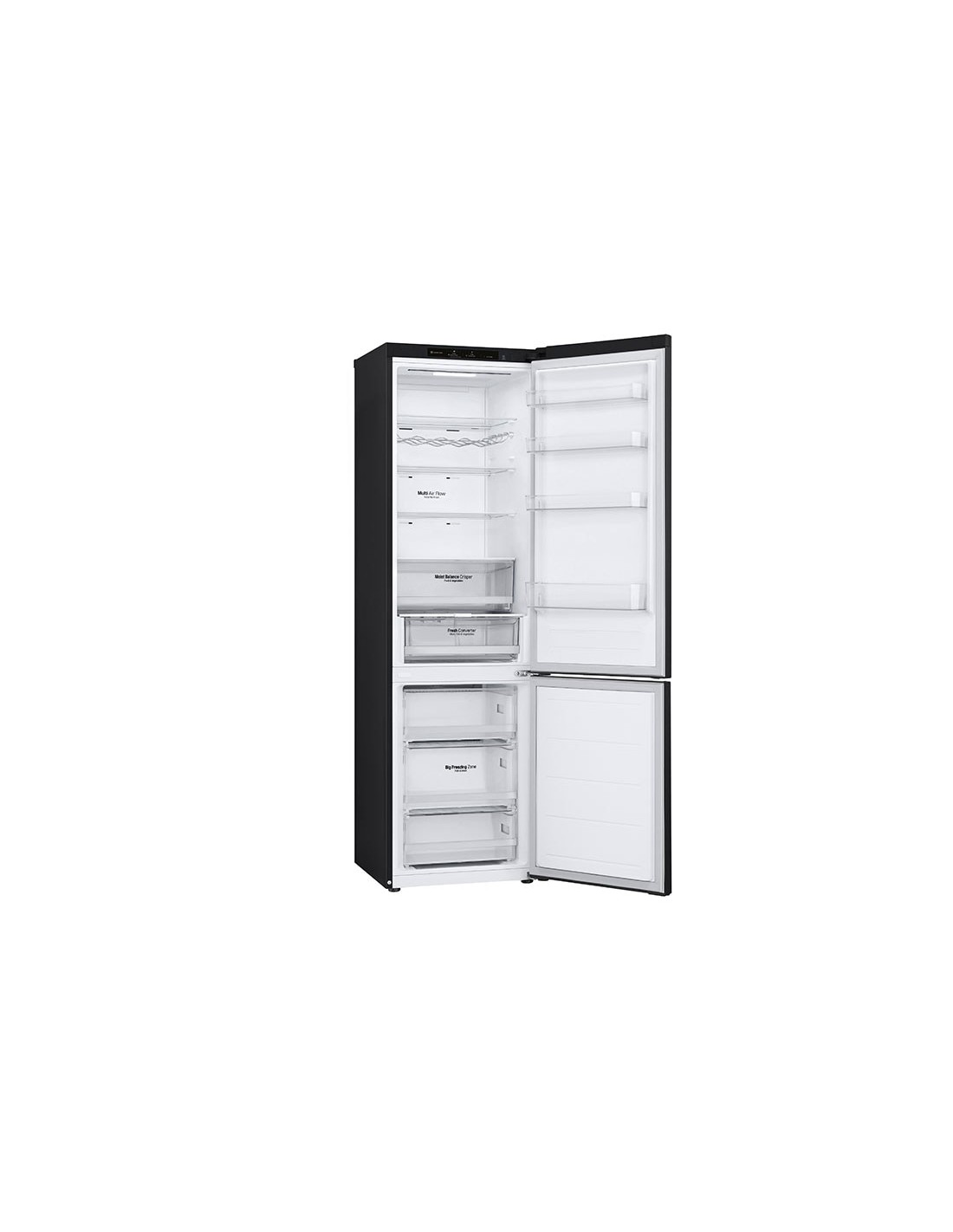 LG GBV5240DEP. Capacità netta totale: 387 L. Cerniera porta: Destra, Tipo di display: LED. Classe climatica: T, Emissione acustica: 35 dB. Capacità netta frigorifero: 277 L, Sistema Multi-Airflow (frigorifero), Luce interna, Numero di ripiani frigorifero: 3. Capacità netta congelatore: 110 L, Capacità di congelamento: 10 kg/24h. Compartimento zona fresca. Classe efficienza energetica: D, Consumo energetico annuo: 217 kWh. Colore del prodotto: Nero