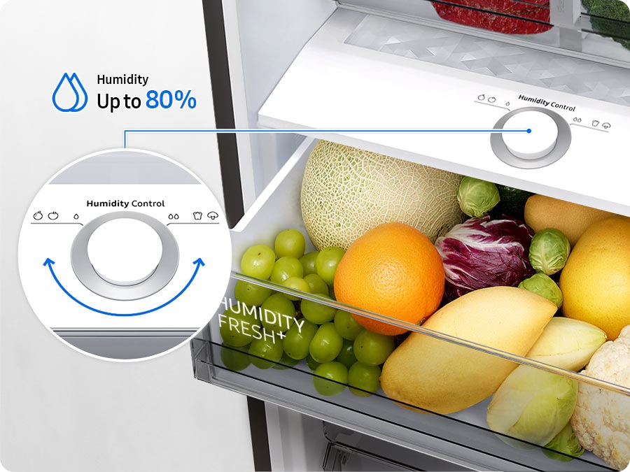 Conserva più a lungo la fragranza, il sapore e la consistenza degli alimenti altamente deperibili. Per regolare lumidità nel cassetto Humidity Fresh + basta ruotare la manopola di controllo. In questo modo, potrai creare lambiente ideale per conservare diversi tipi di frutta e verdura, affinché restino freschi e succosi più a lungo.