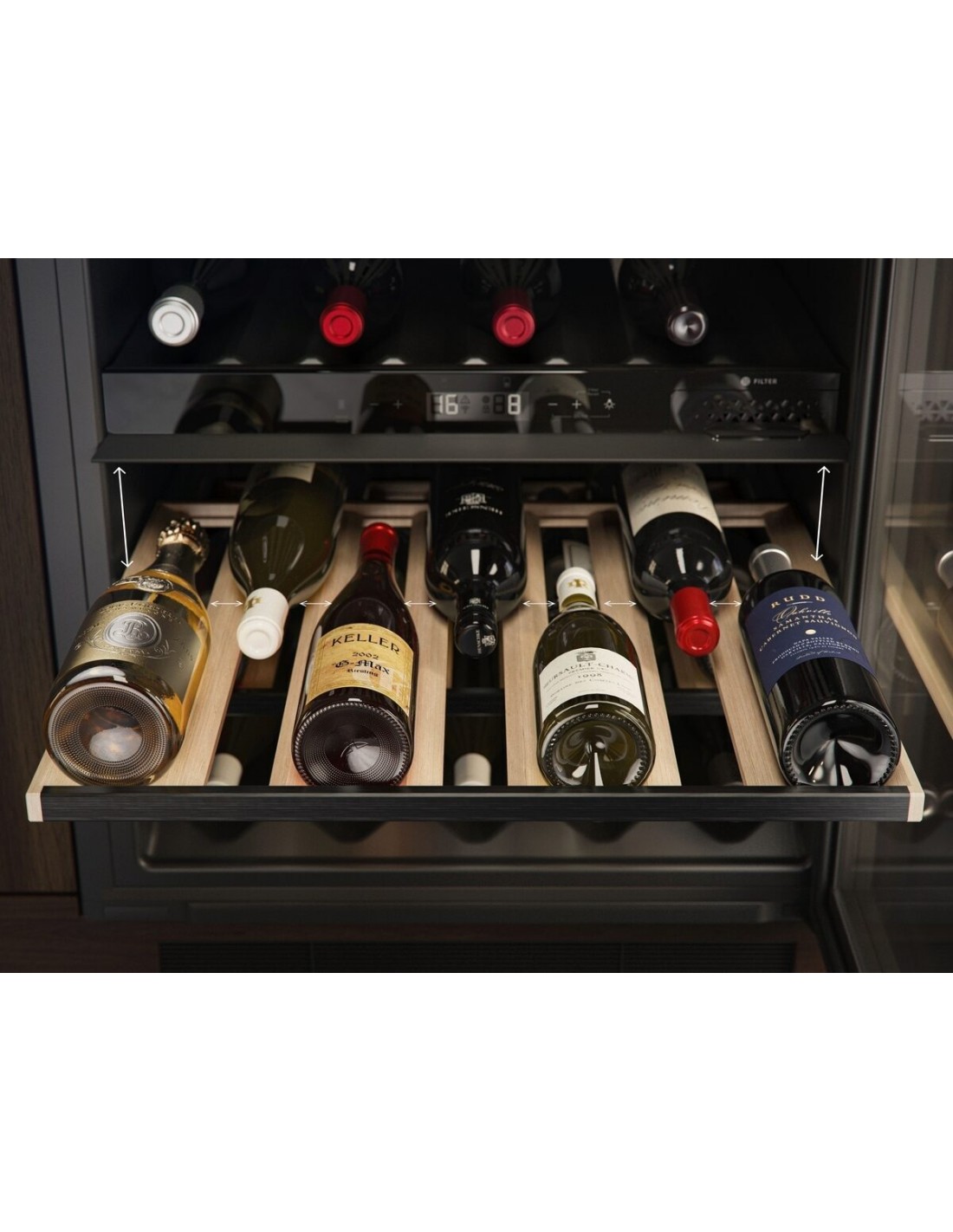 Perfect Shelving 8000 mette in mostra i tuoi vini grazie ai ripiani in legno estensibili di eccellente qualità. Progettato con una spaziatura ottimale per riporre tutte le principali bottiglie da 750 ml, compreso il tuo Champagne preferito, senza graffiarne le etichette.