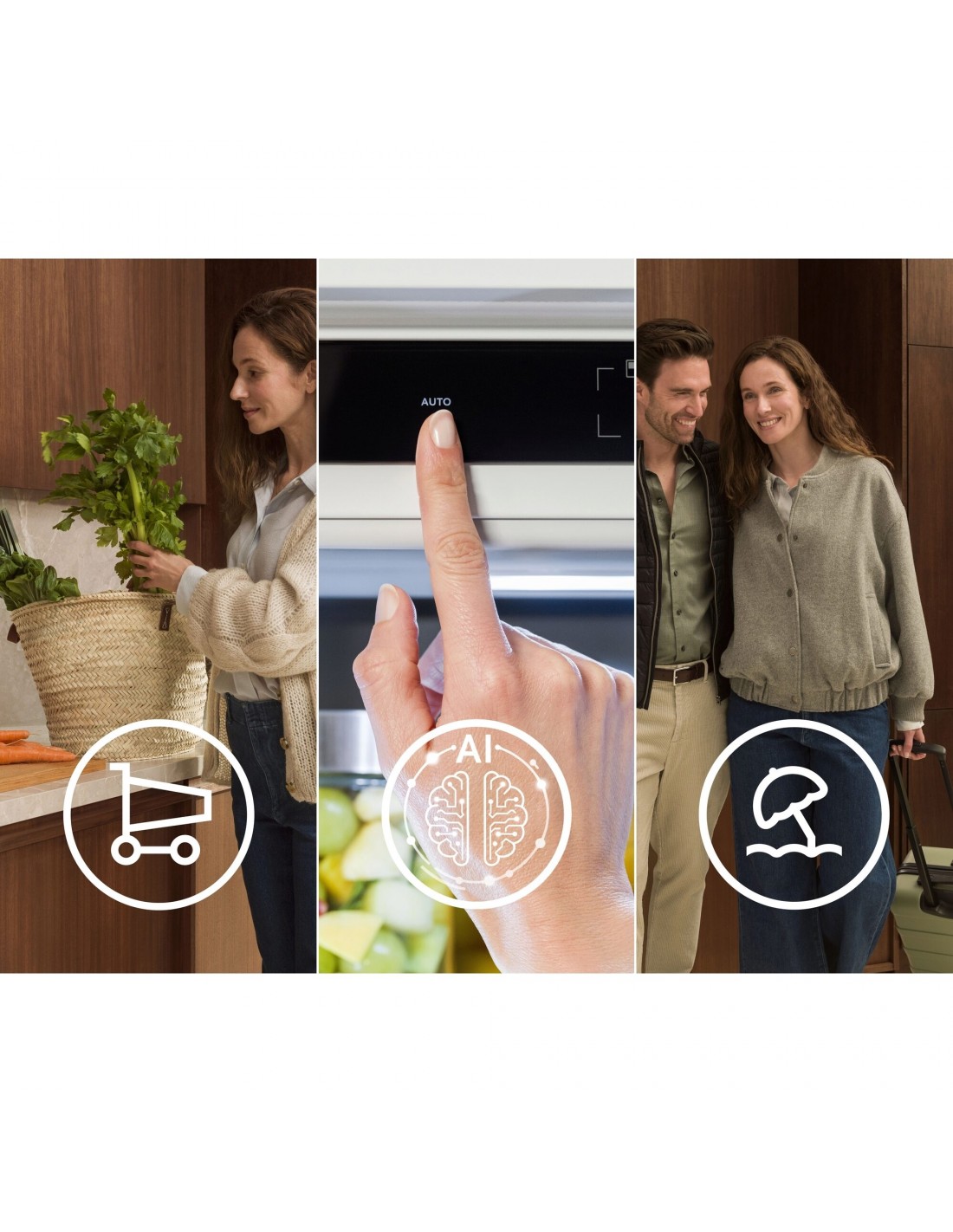 AI CoolAssist® adatta intuitivamente le impostazioni del frigorifero alle tue abitudini, regolando la temperatura quando fai la spesa o quando parti per le vacanze. AI CoolAssist® apprende le tue abitudini per ottimizzare la temperatura e le funzioni, risparmiando fino al 10% di energia[3]