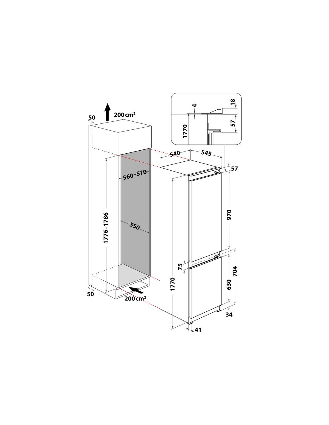 Frigorifero Whirlpool ART66001. Misura (LxPxA) 54 cm X 55 cm X 177 cm. Capacità netta congelatore 79 L. Capacità netta frigorifero 194 L. Cerniera porta Destra. Porta invertibile. Emissione acustica 35 dB