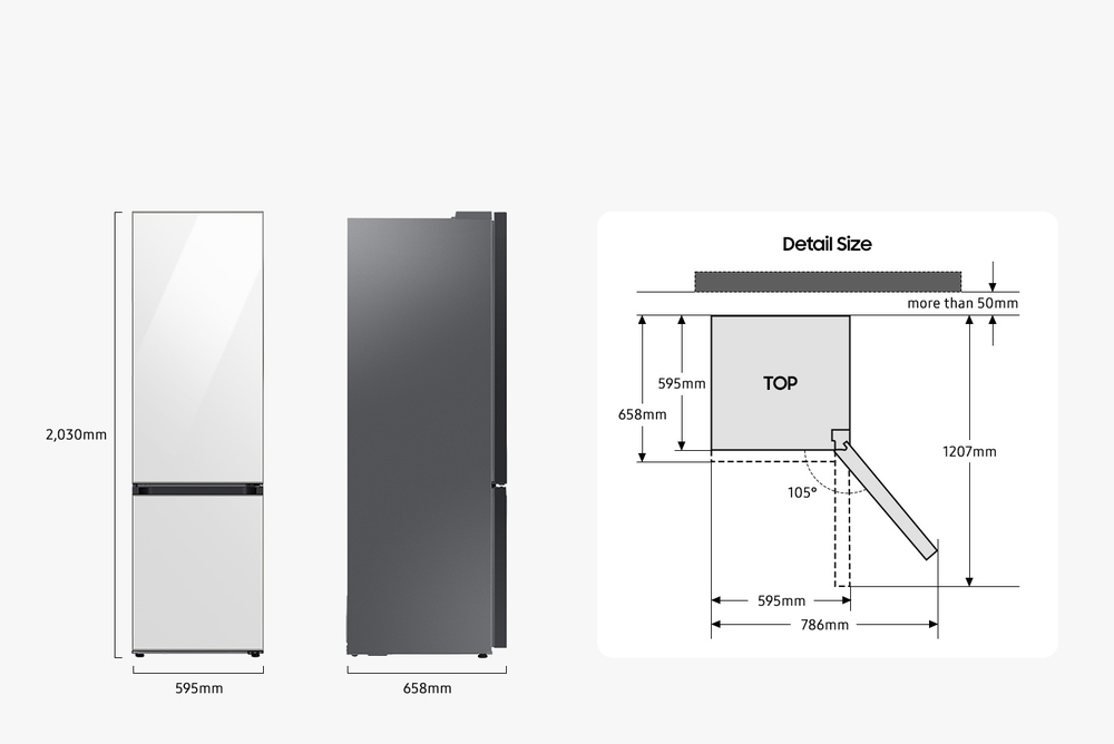 Frigorifero Samsung RB38A7B6AB1. Misura (LxPxA) 60 cm X 60 cm X 203 cm. Capacità netta congelatore 114 L. Capacità netta frigorifero 273 L. Cerniera porta Destra. Porta invertibile. Emissione acustica 35 dB