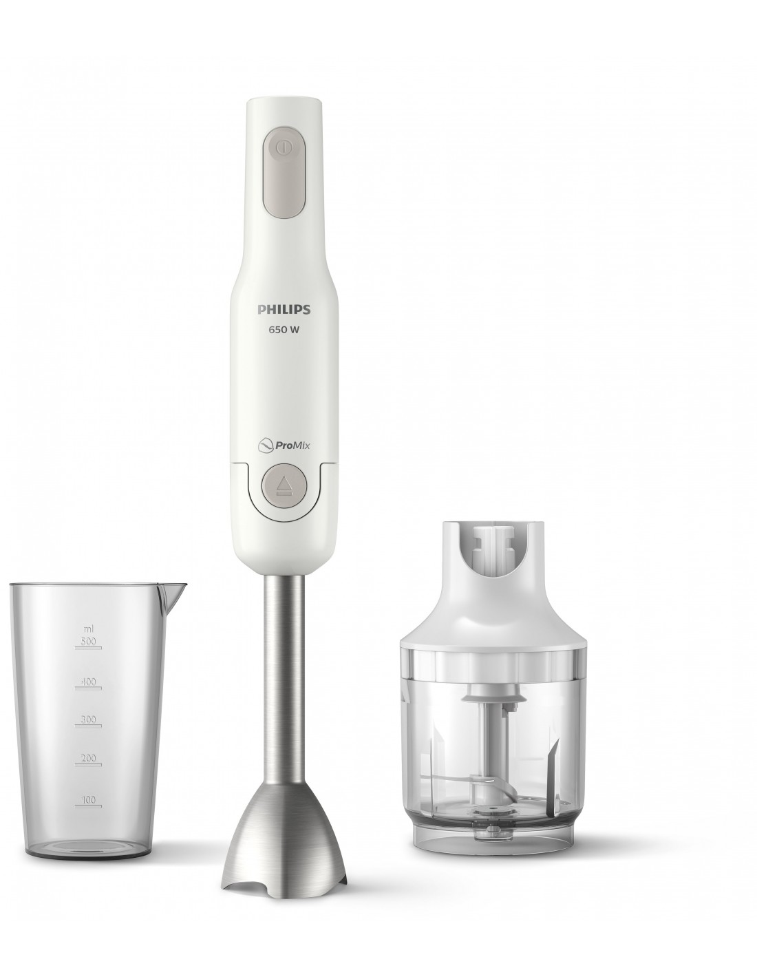 Grazie al potente motore e all'esclusivo design ergonomico, il nuovo frullatore a immersione per uso quotidiano offre una mescolatura rapida ed efficace con il semplice tocco di un pulsante, per preparare con facilità piatti sani fatti in casa ogni giorno