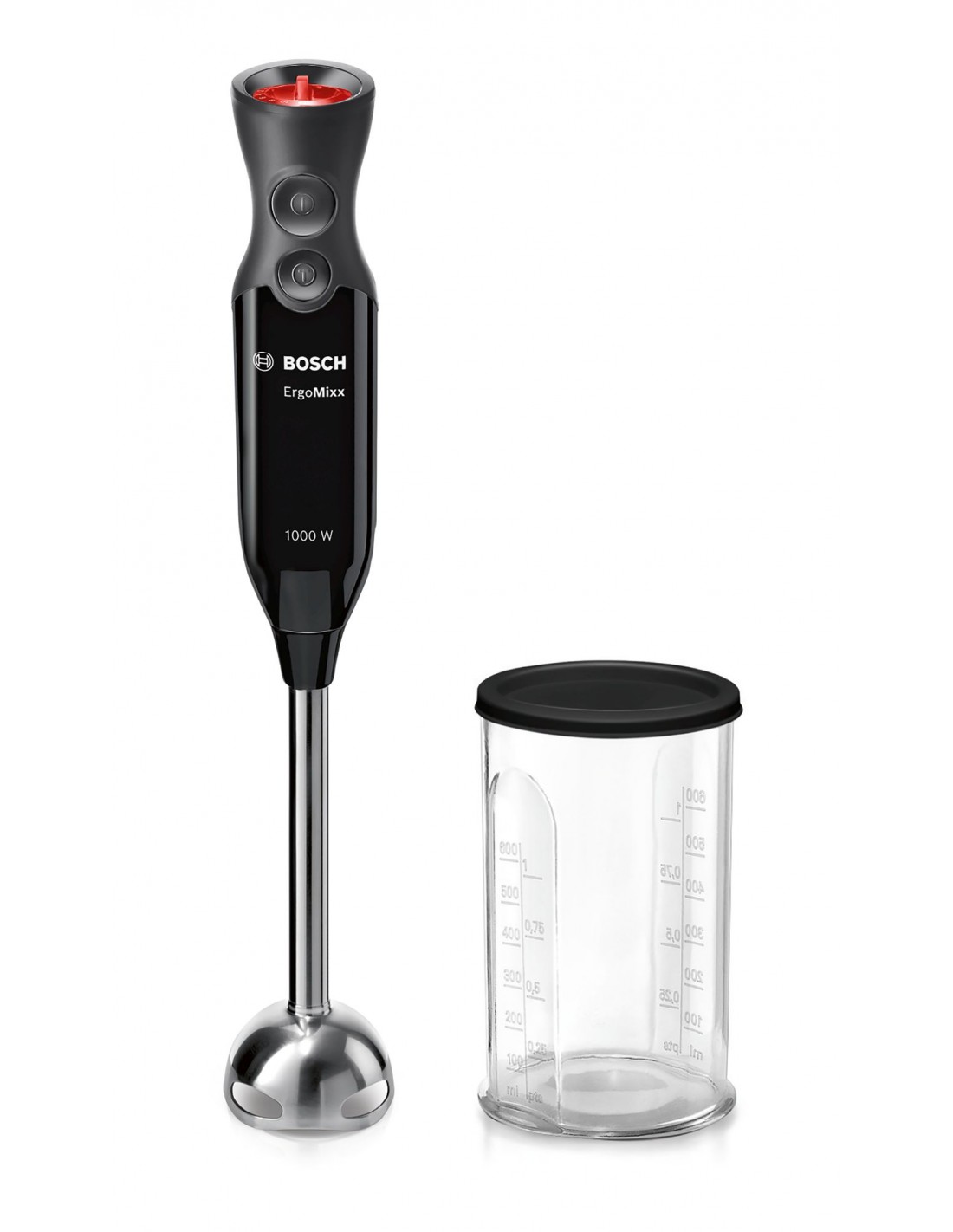 Bosch MS6CB6110 Frullatore a immersione ErgoMixx 1000 W Nero, antracite. Tipo: Frullatore ad immersione, Colore del prodotto: Antracite, Nero, Nome del colore: Nero, antracite. Capacità ciotola: 0,6 L, Tipo di controllo: Pulsanti. Materiale della scocca: Plastica. Potenza: 1000 W, Alimentazione: AC, Tensione di ingresso AC: 220 - 240 V. Larghezza: 55 mm, Profondità: 62 mm, Altezza: 393 mm