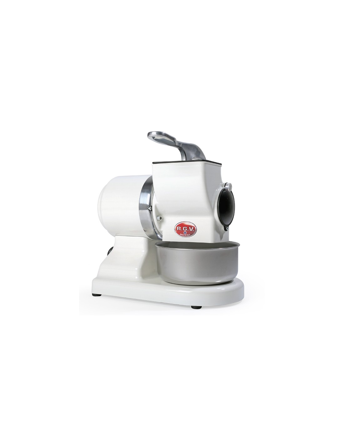 Grattugia elettrica bianca con rullo professionale in acciaio inox ideale per grattugiare oltre al formaggio duro anche pane, frutta secca, mandorle e cioccolato.