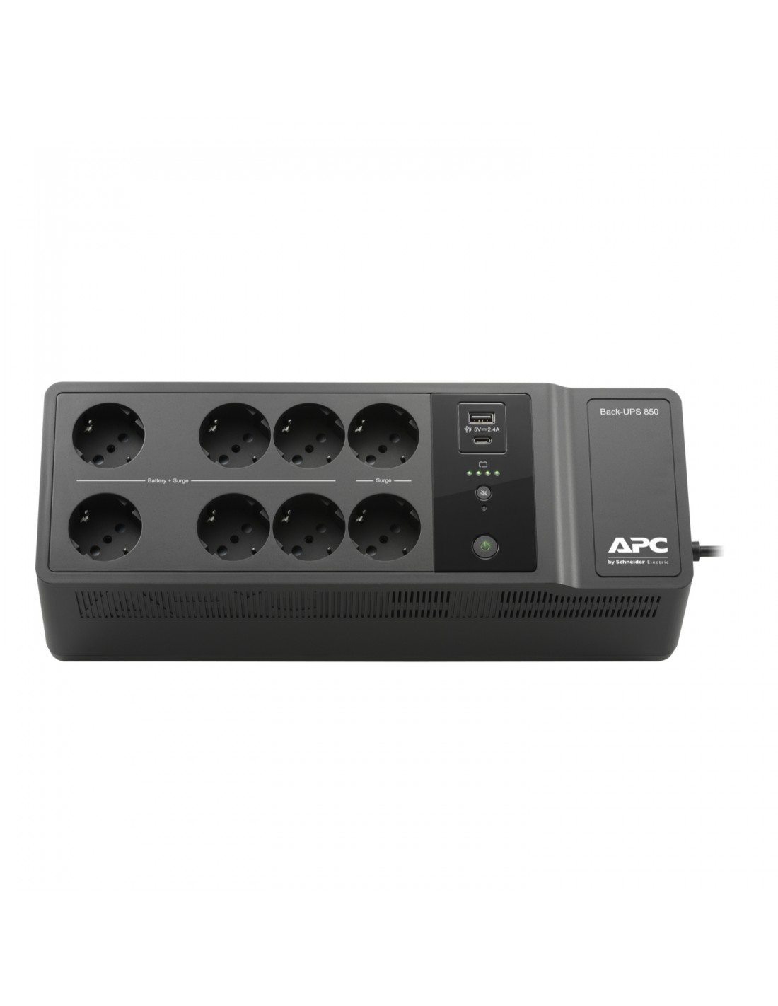 APC BE850G2-IT. Topologia UPS: Standby (Offline), Potenza in uscita: 0,85 kVA, Potenza in uscita: 520 W. Tipo di porta USB: USB tipo-C, Tecnologia di cablaggio: 10/100Base-T. Durata della batteria (max): 5 anno/i, Tempo di ricarica: 16 h. Fattore di forma: Compatta, Colore del prodotto: Nero, Lunghezza cavo: 1,83 m. Larghezza: 130 mm, Profondità: 365 mm, Altezza: 120 mm