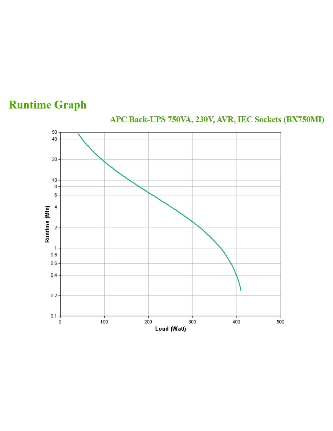 APC BX750MI. Topologia UPS: A linea interattiva, Potenza in uscita: 0,75 kVA, Potenza in uscita: 410 W. Tipo di uscita AC: Accoppiatore C13, Presa di corrente: Accoppiatore C14, Quantità prese AC: 4 presa(e) AC. Tecnologia batteria: Acido piombo (VRLA), Tempo di salvataggio minimo a pieno carico: 1 min, Tempo di salvataggio minimo a mezzo carico: 8,5 min. Fattore di forma: Compatta, Colore del prodotto: Nero, Lunghezza cavo: 1,2 m. Larghezza: 120 mm, Profondità: 355 mm, Altezza: 160 mm