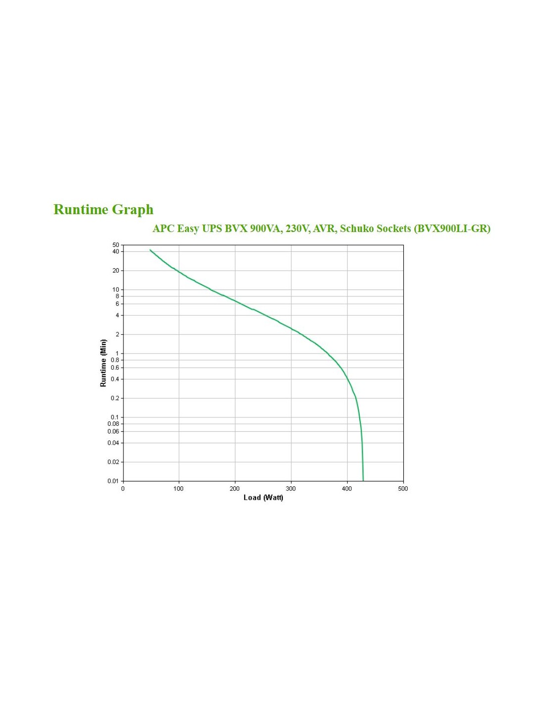 APC BVX900LI-GR. Topologia UPS: A linea interattiva, Potenza in uscita: 0,9 kVA, Potenza in uscita: 480 W. Tipo di uscita AC: Tipo F, Presa di corrente: Tipo F, Quantità prese AC: 2 presa(e) AC. Tecnologia batteria: Acido piombo (VRLA), Capacità della batteria: 9 Ah, Voltaggio della batteria: 12 V. Fattore di forma: Compatta, Colore del prodotto: Nero, Codice di protezione internazionale (IP): IP20. Larghezza: 120 mm, Profondità: 355 mm, Altezza: 160 mm